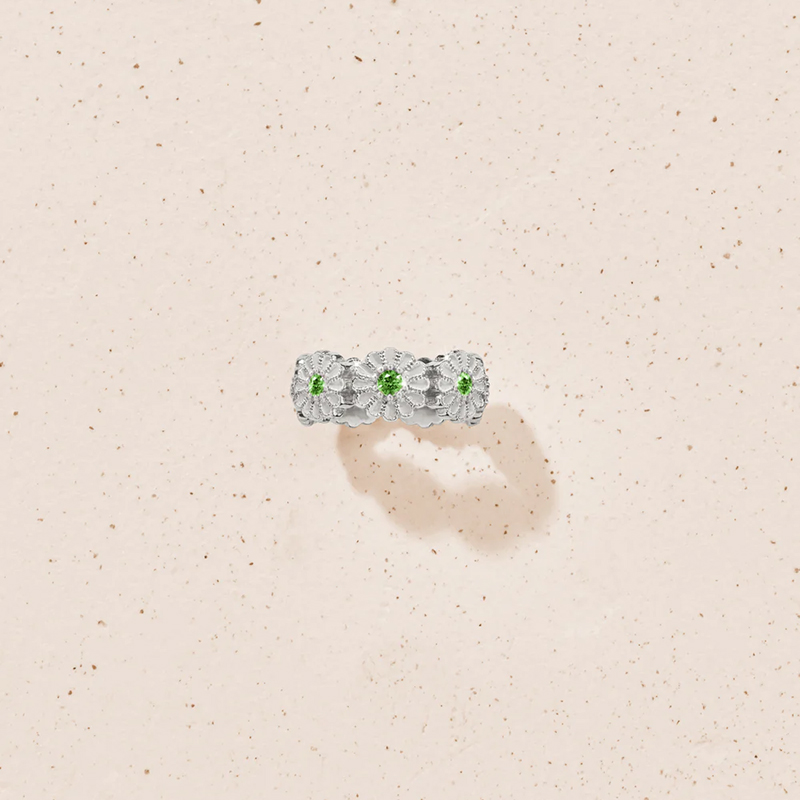 北京仓|Tityaravy-Sai-7-银色 绿色 花朵 透辉石 戒指[法国设计师]