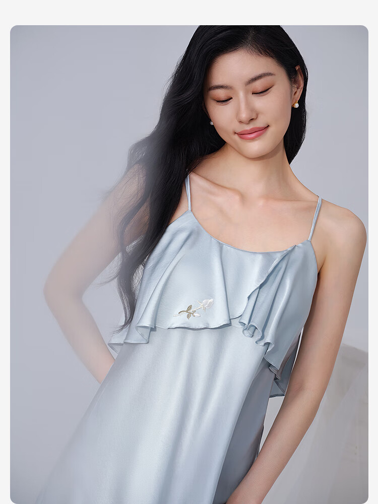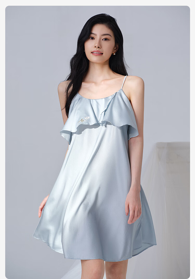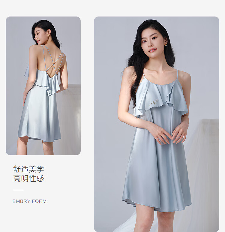 【3F】安莉芳桑蚕丝混纺圆领吊带A字短裙睡裙家居裙EL00848
