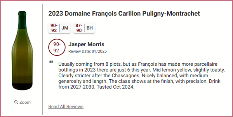无懈可击“越级品质”!两大名村混酿!迦莲浓庄园勃艮第金丘白葡萄酒 Francois Carillon Bourgogne Chardonnay Blanc Côte d’Or 2023
