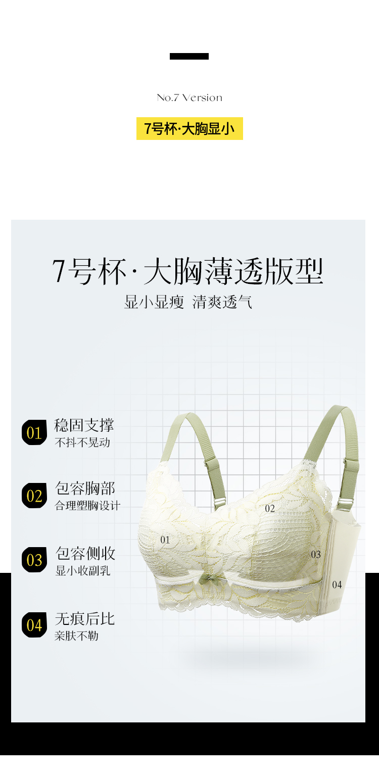 【298选3件】D2-💟【B-E杯】【侧翼网纱透气】【大胸显小】润微无钢圈防下垂收副乳文胸胸罩 薄荷小姐