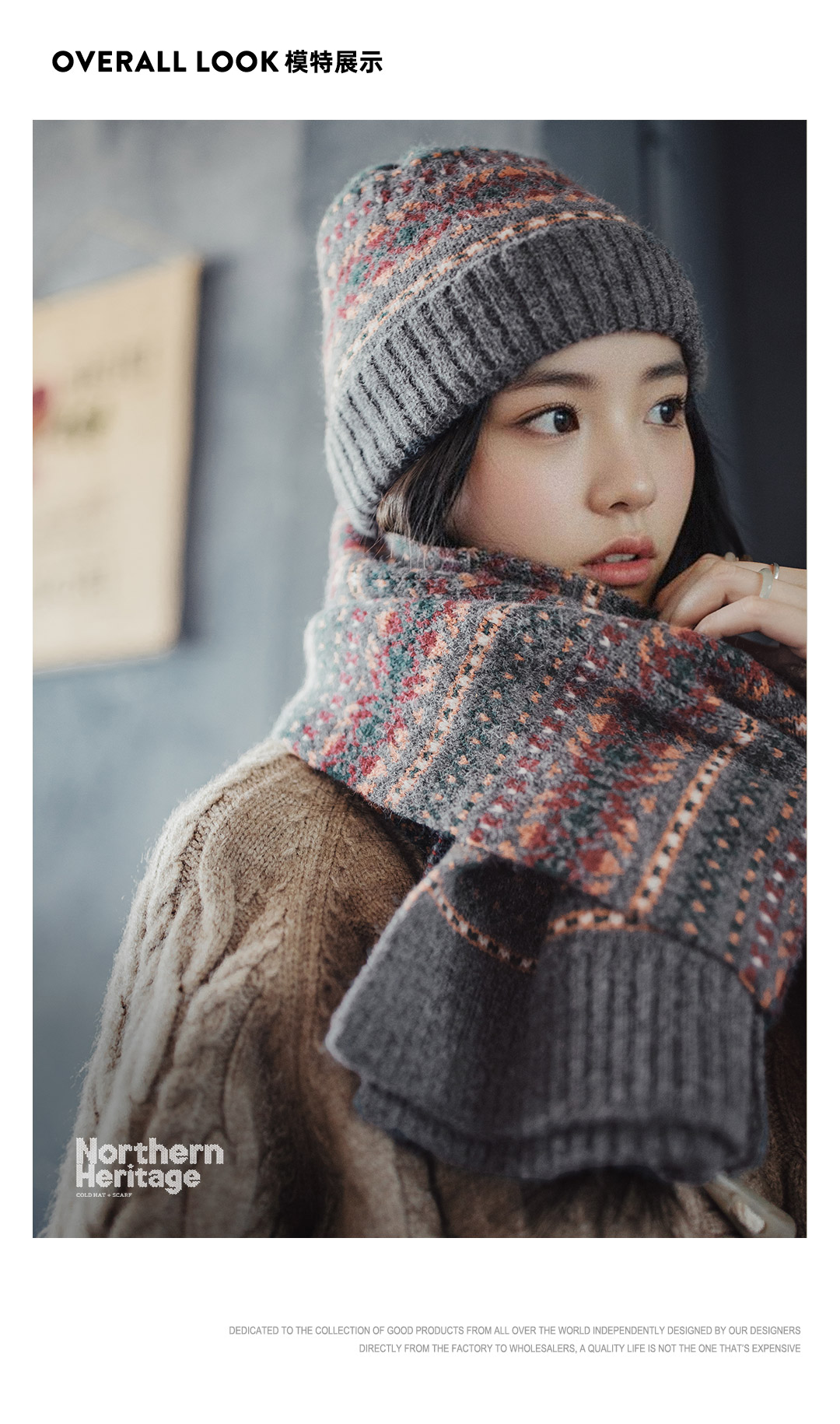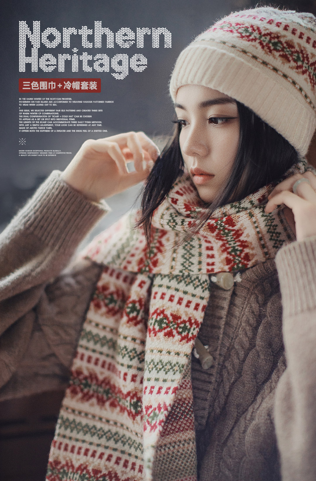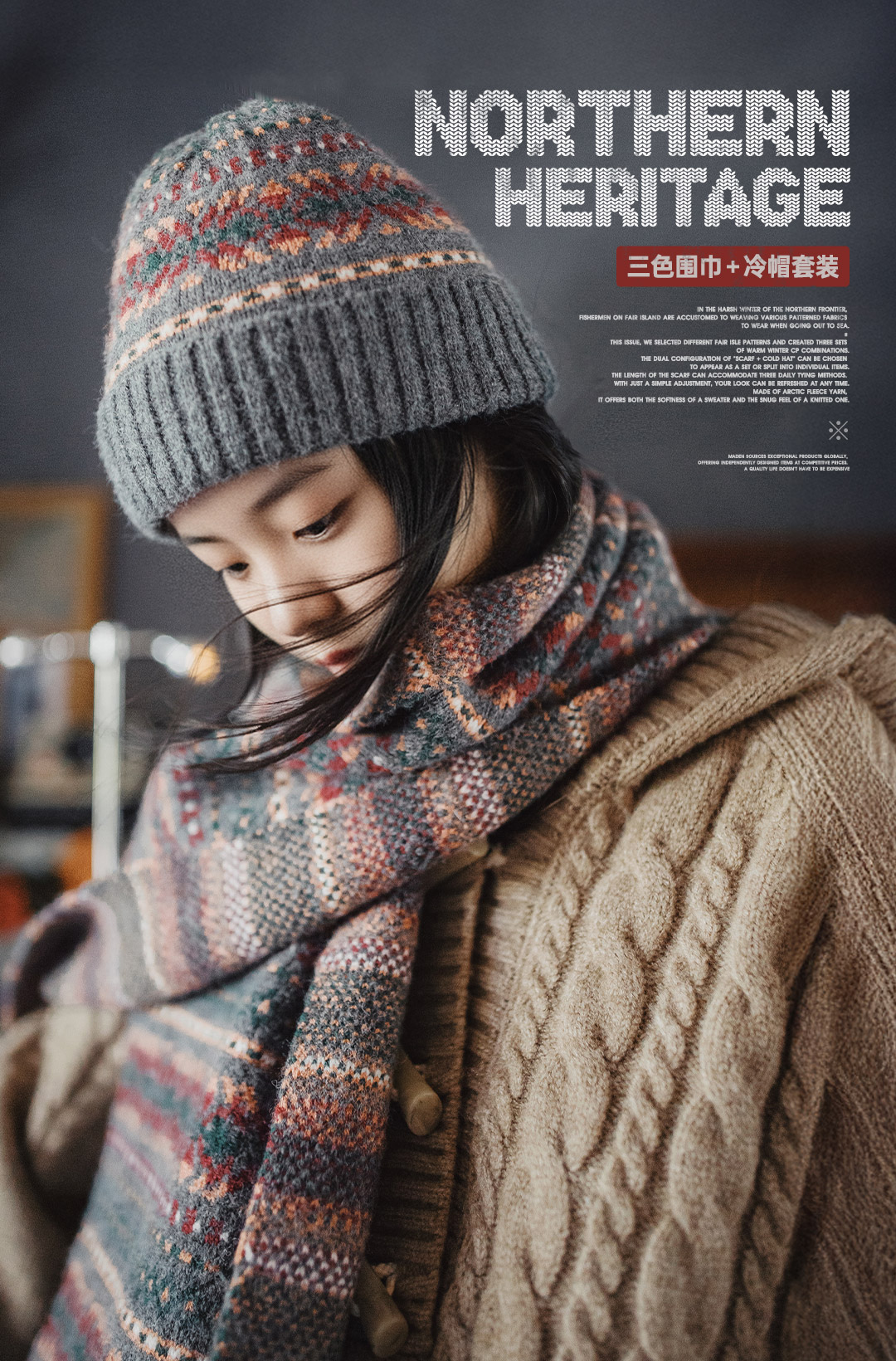 马登美式复古费尔岛风针织围巾加厚保暖毛线帽子情侣礼盒套装秋冬