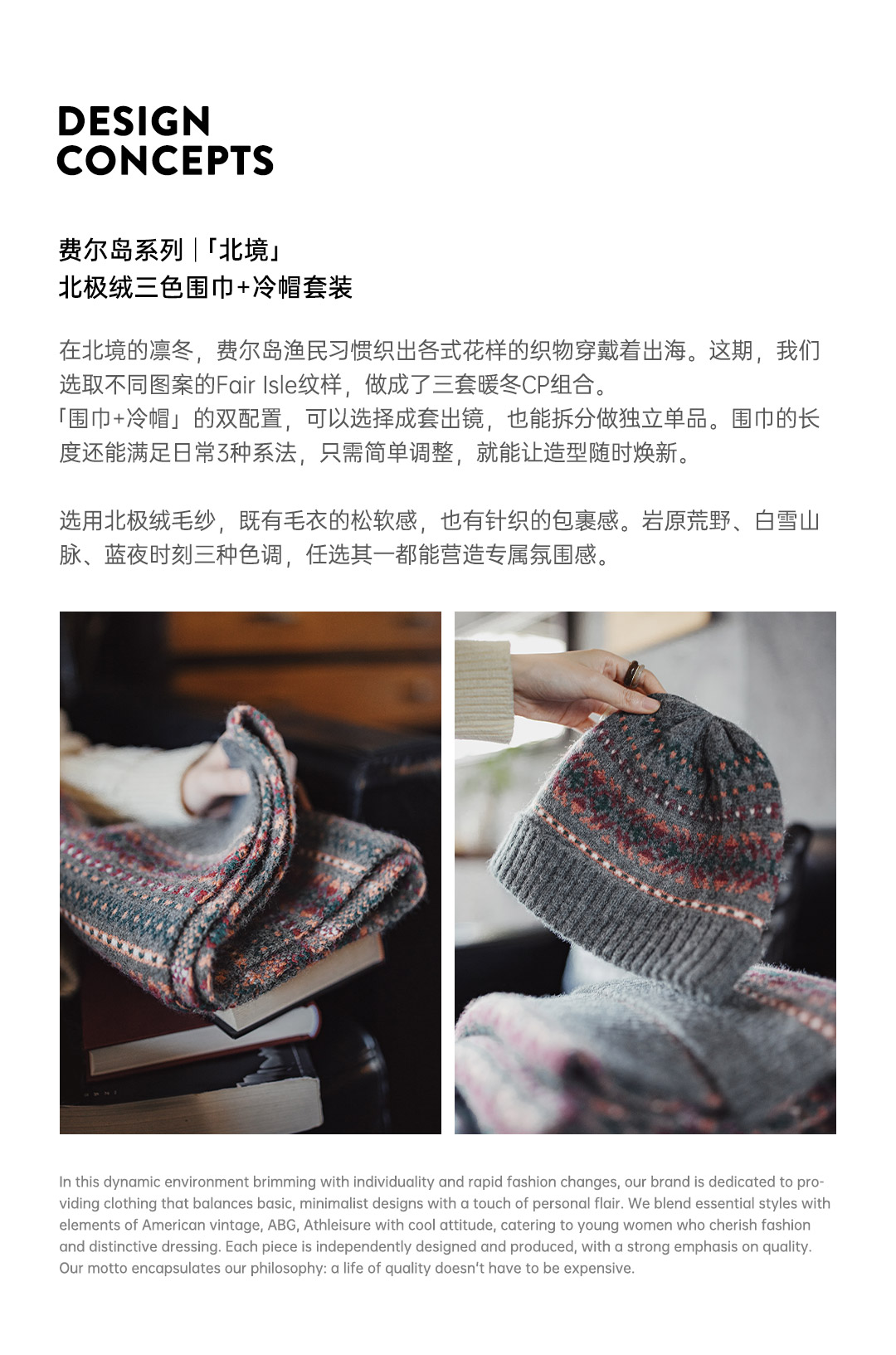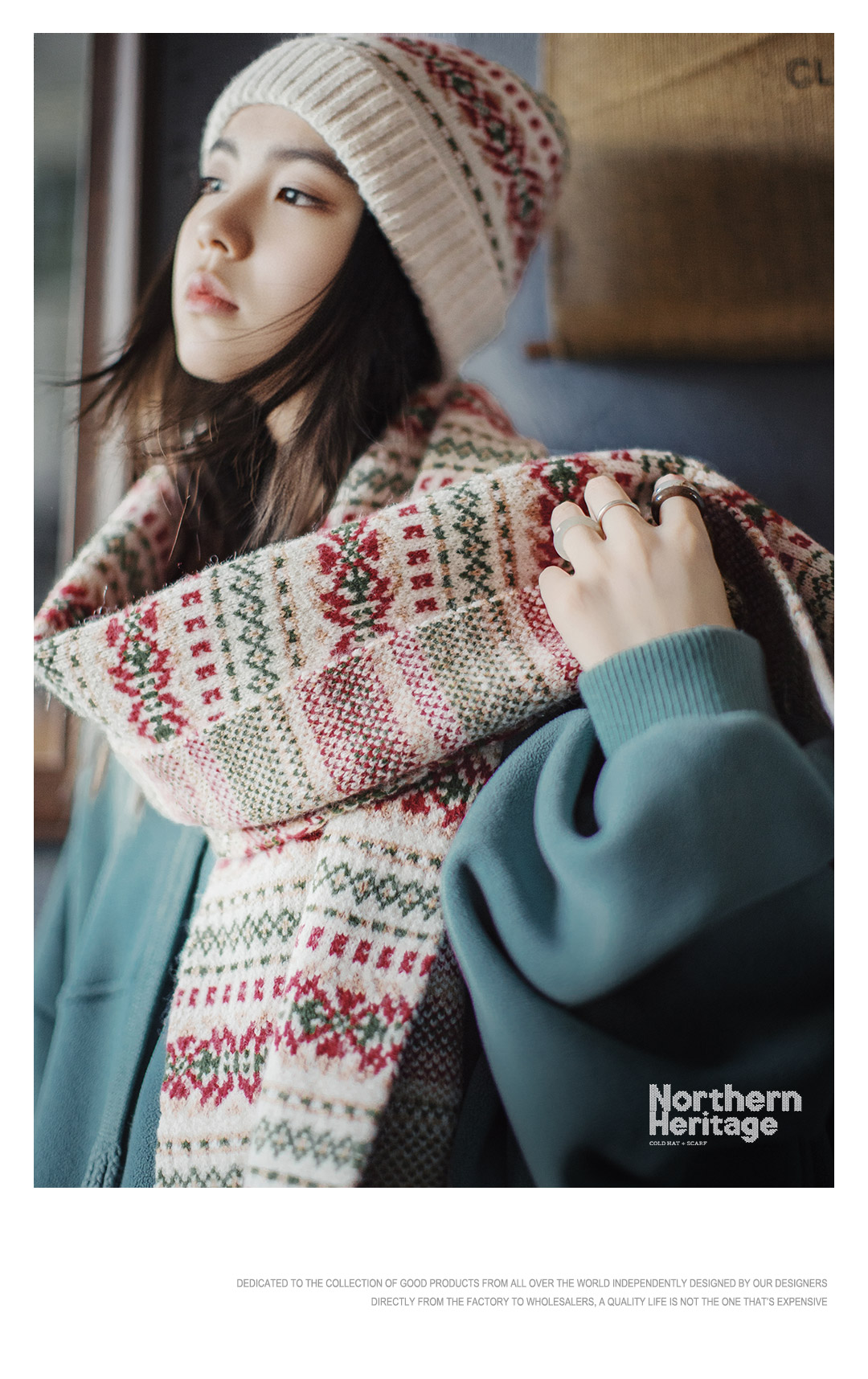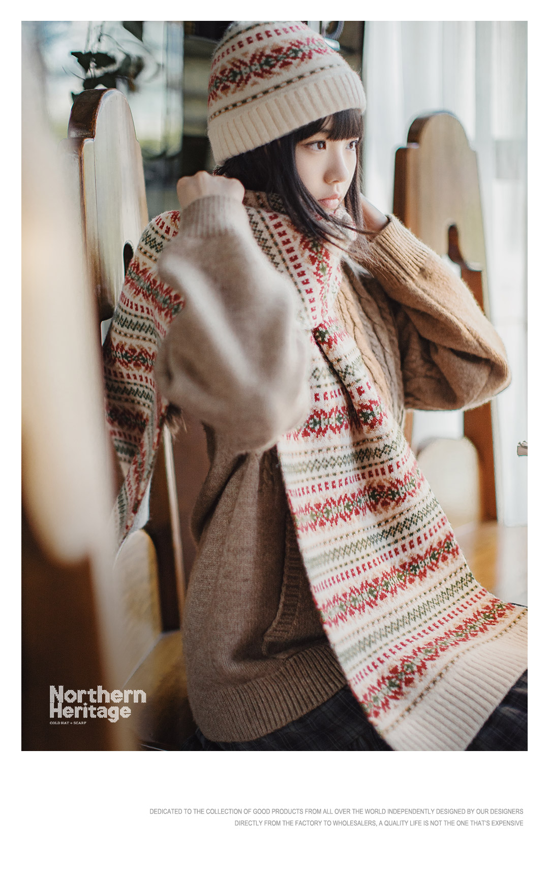 马登美式复古费尔岛风针织围巾加厚保暖毛线帽子情侣礼盒套装秋冬