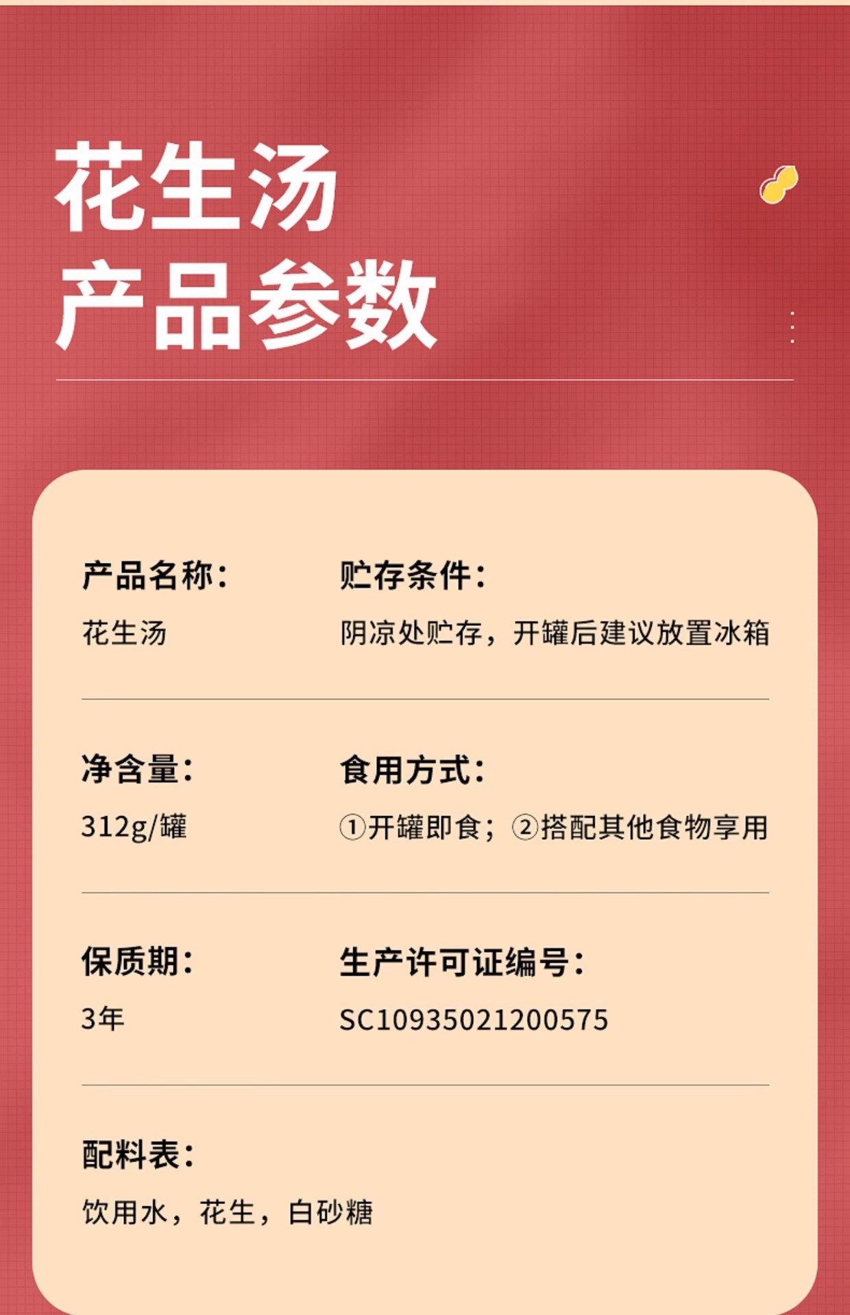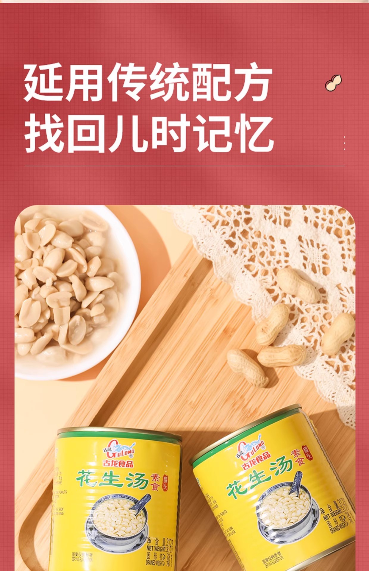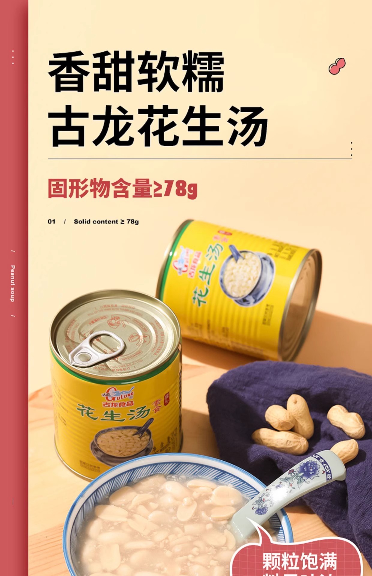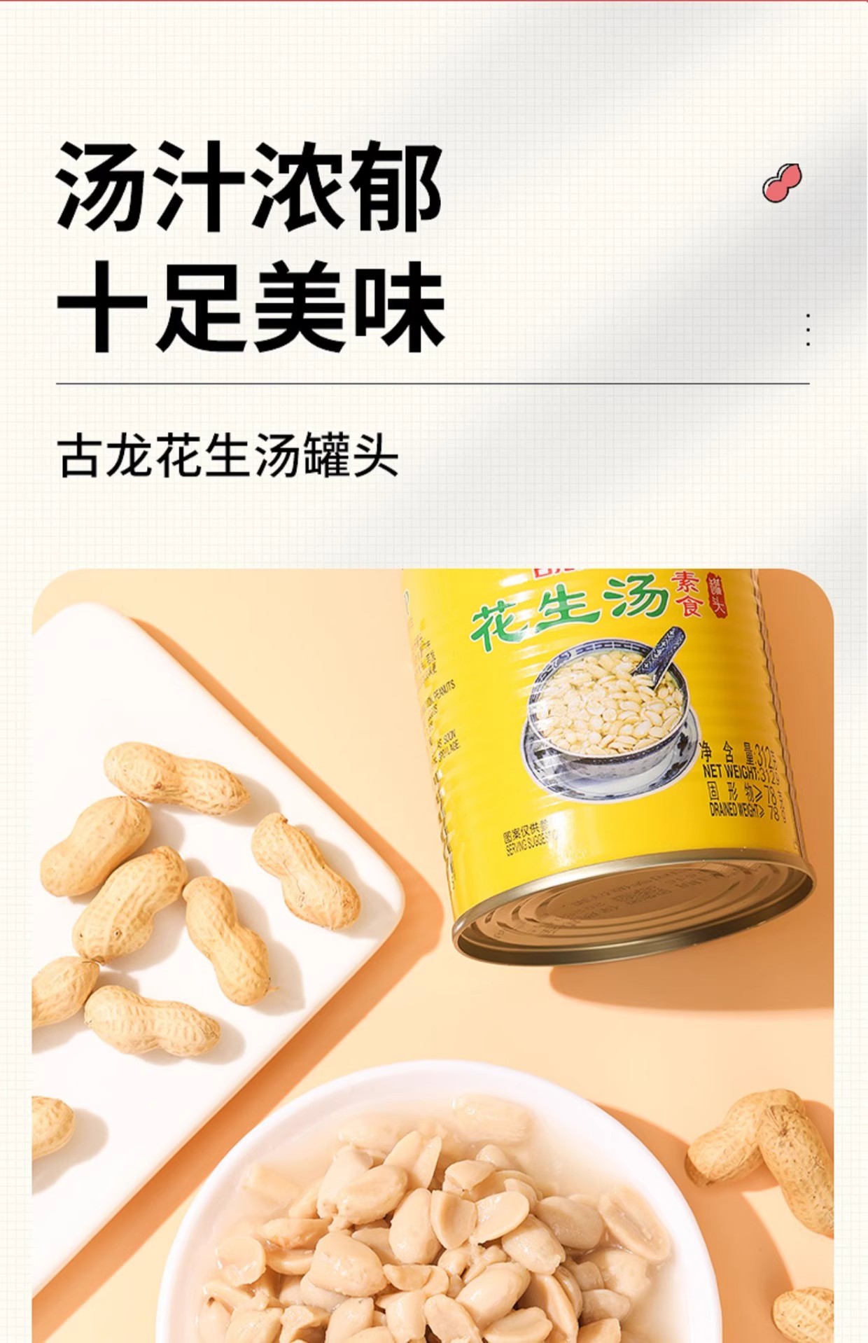古龙花生汤食品户外便携速食早餐饮品厦门甜食罐头甜汤