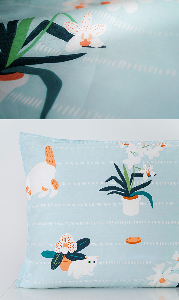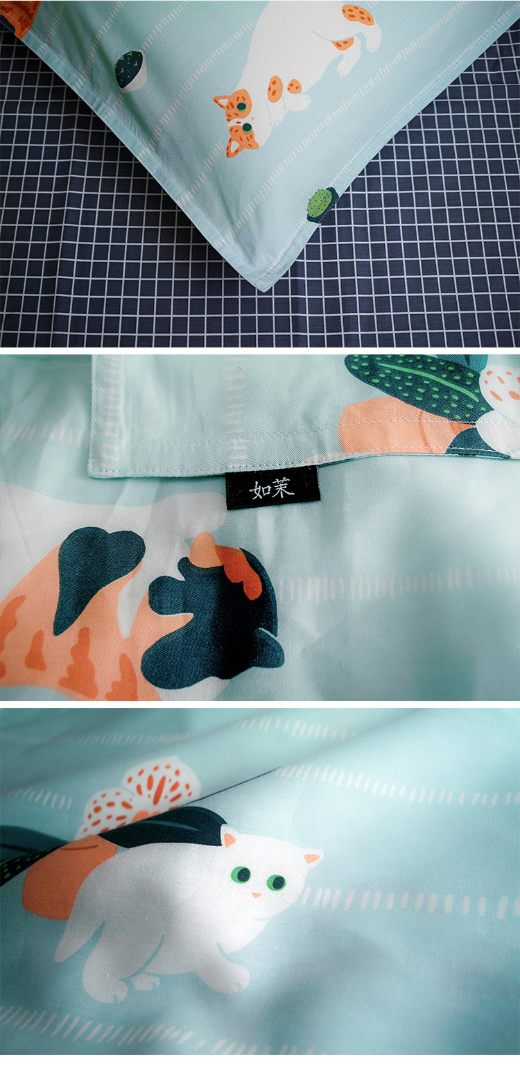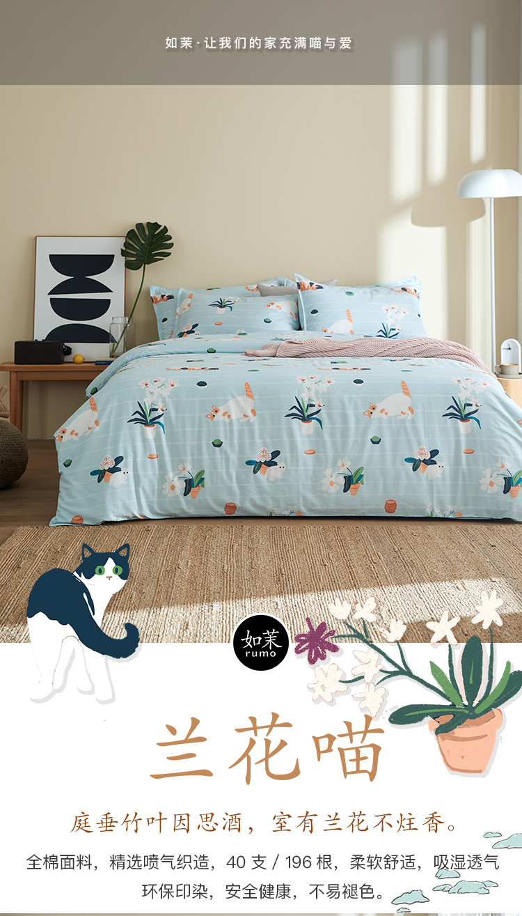【幸运土猫】兰花喵如茉全棉纯棉猫三四件套件柔软被套原创设计