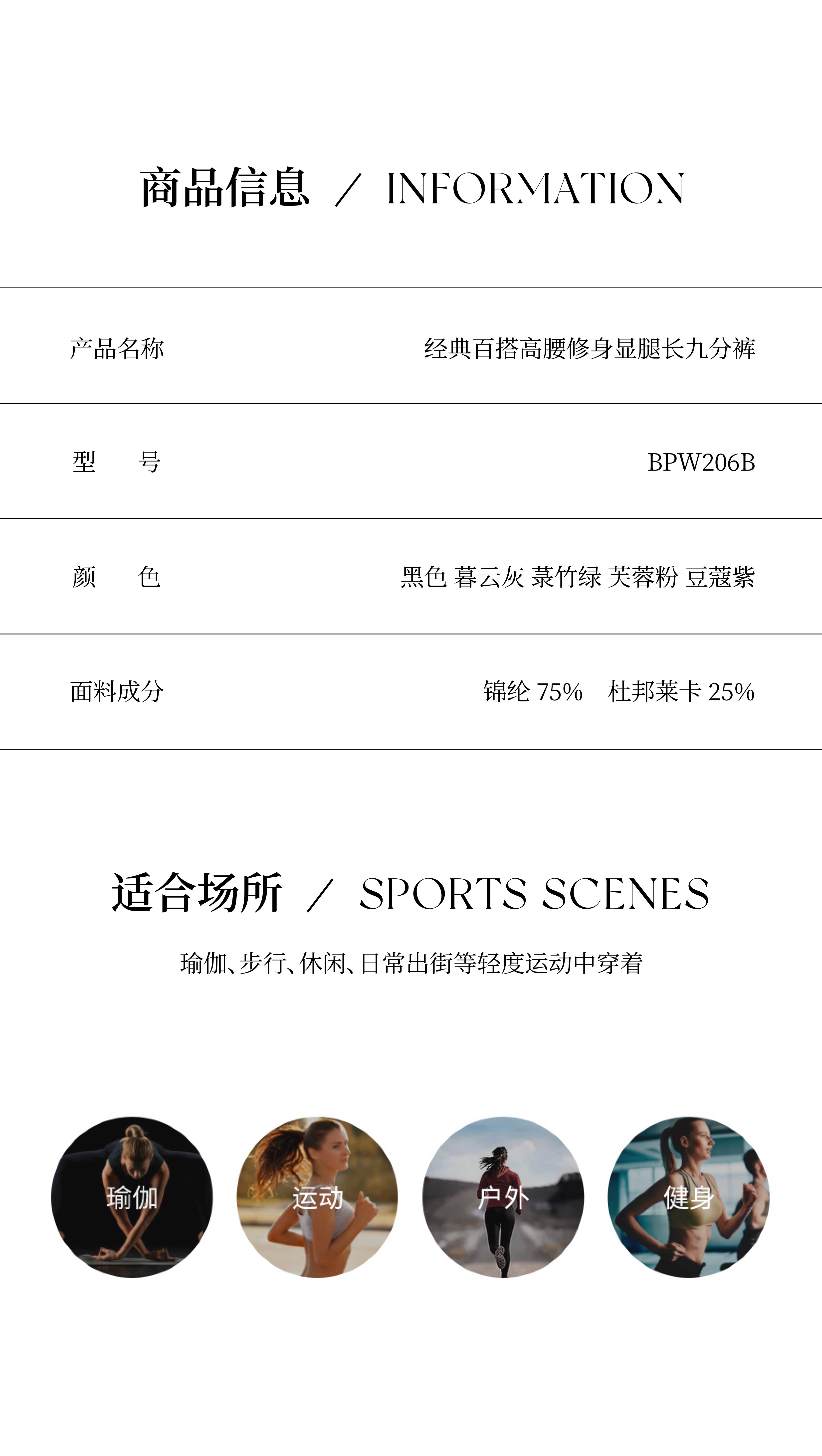 优卡莲yokaland经典百搭高腰修身显腿长健身运动瑜伽超细莱卡九分裤BPW206B