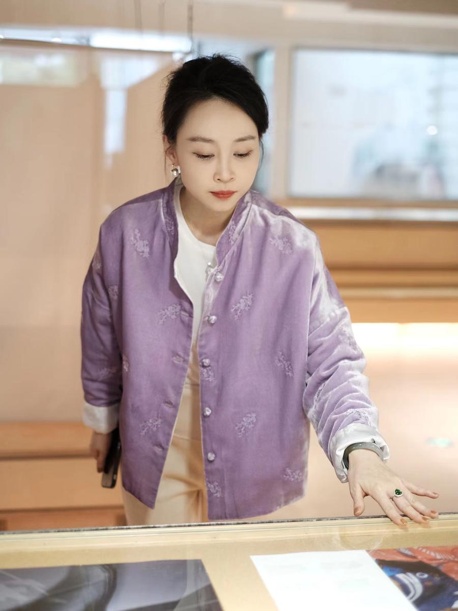 盛唐牡丹 | 粉色蝶恋花/紫色喜鹊缠枝真丝提花褶皱上衣