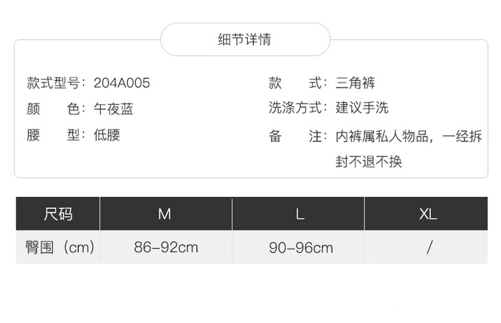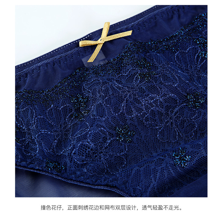 暗香配套刺绣内裤 午夜蓝低腰女三角裤 奶糖派Candy La VIE 204A005