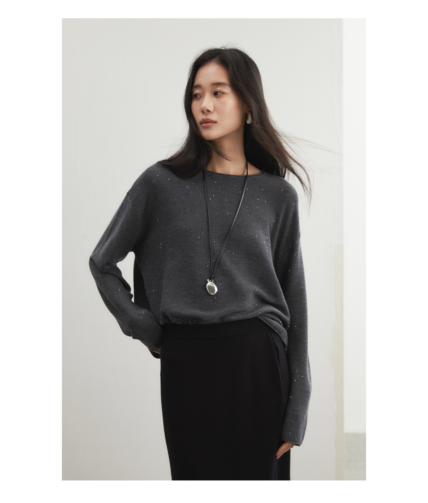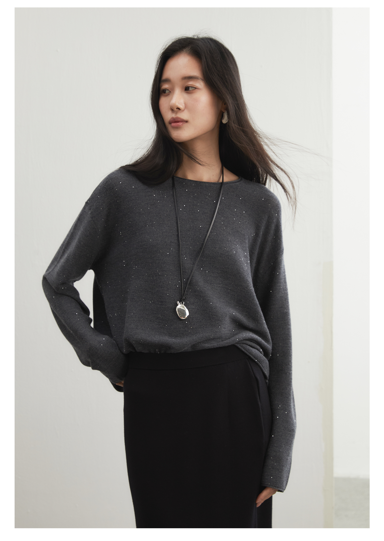 棉仓3561505008-秋装宽松满天星亮片羊毛衫毛衣*打底羊毛针织衫