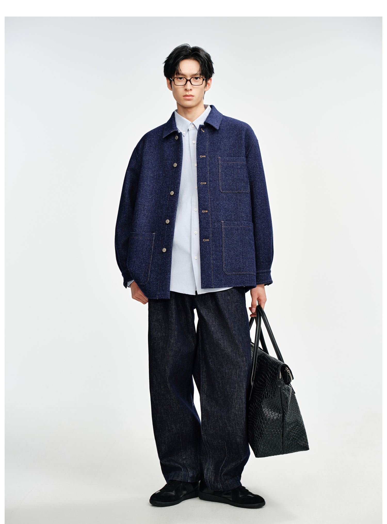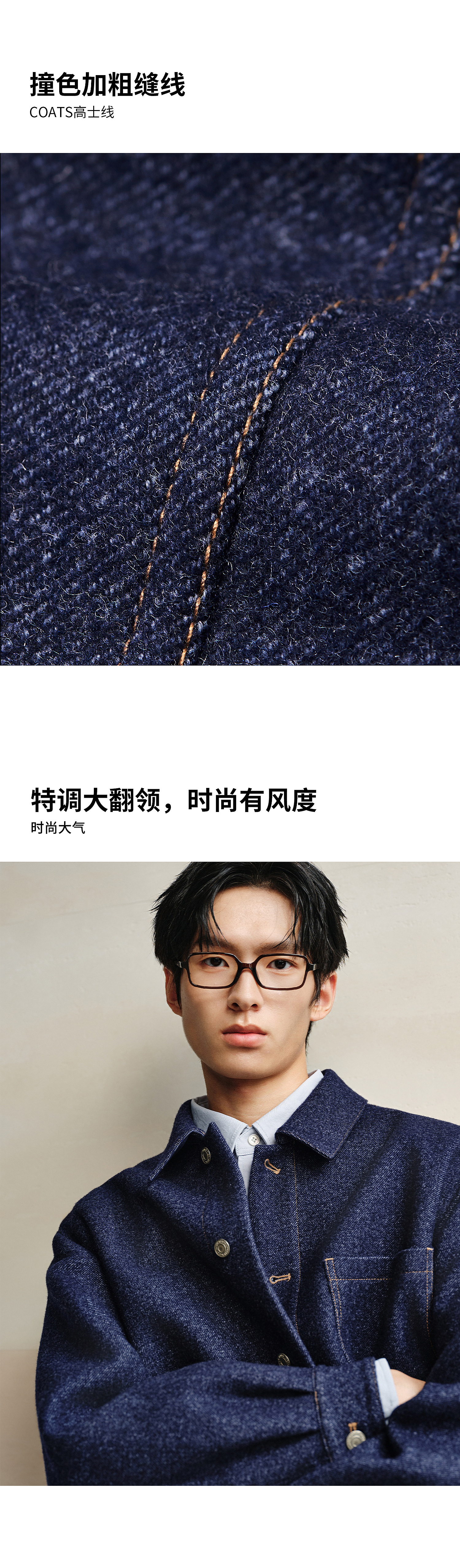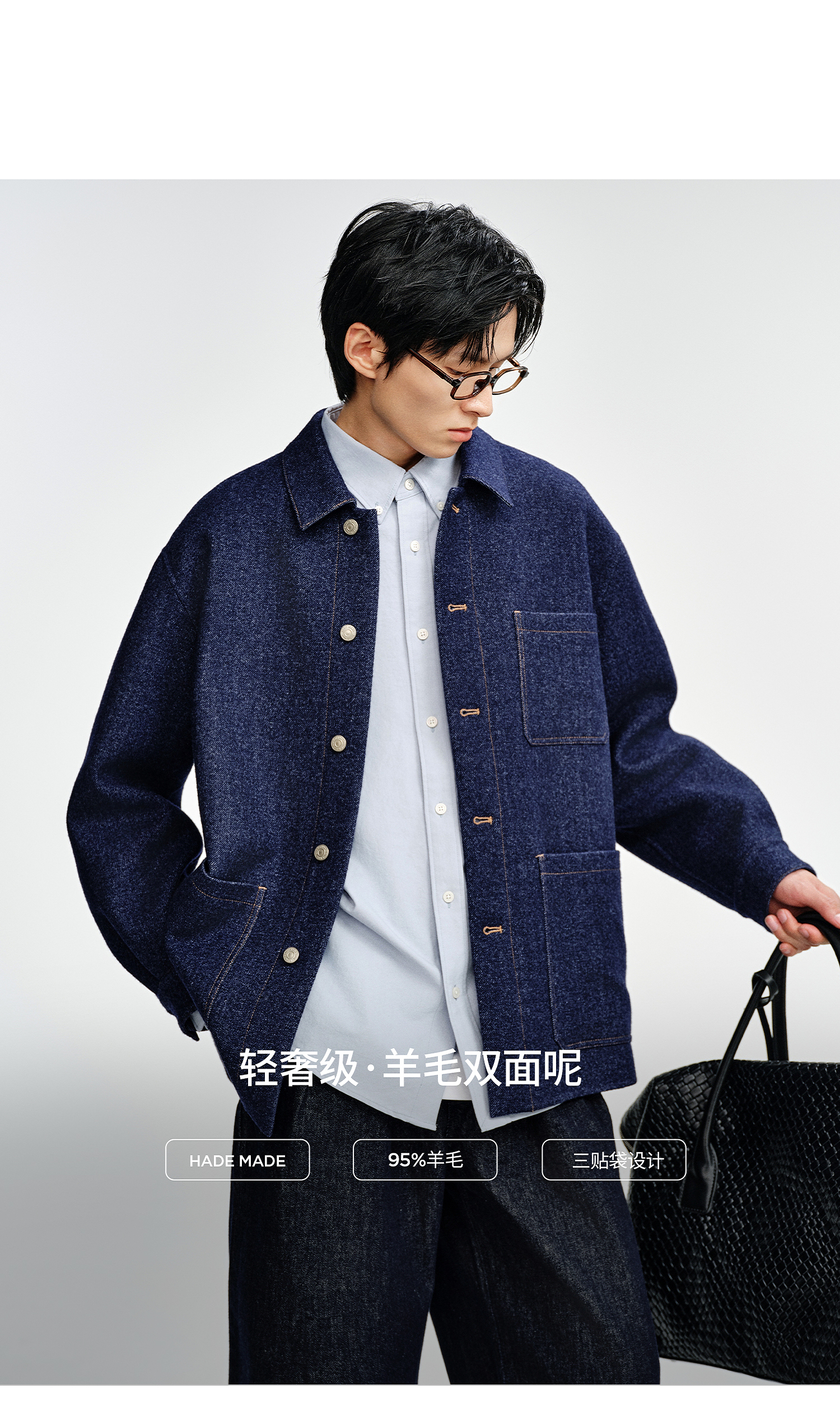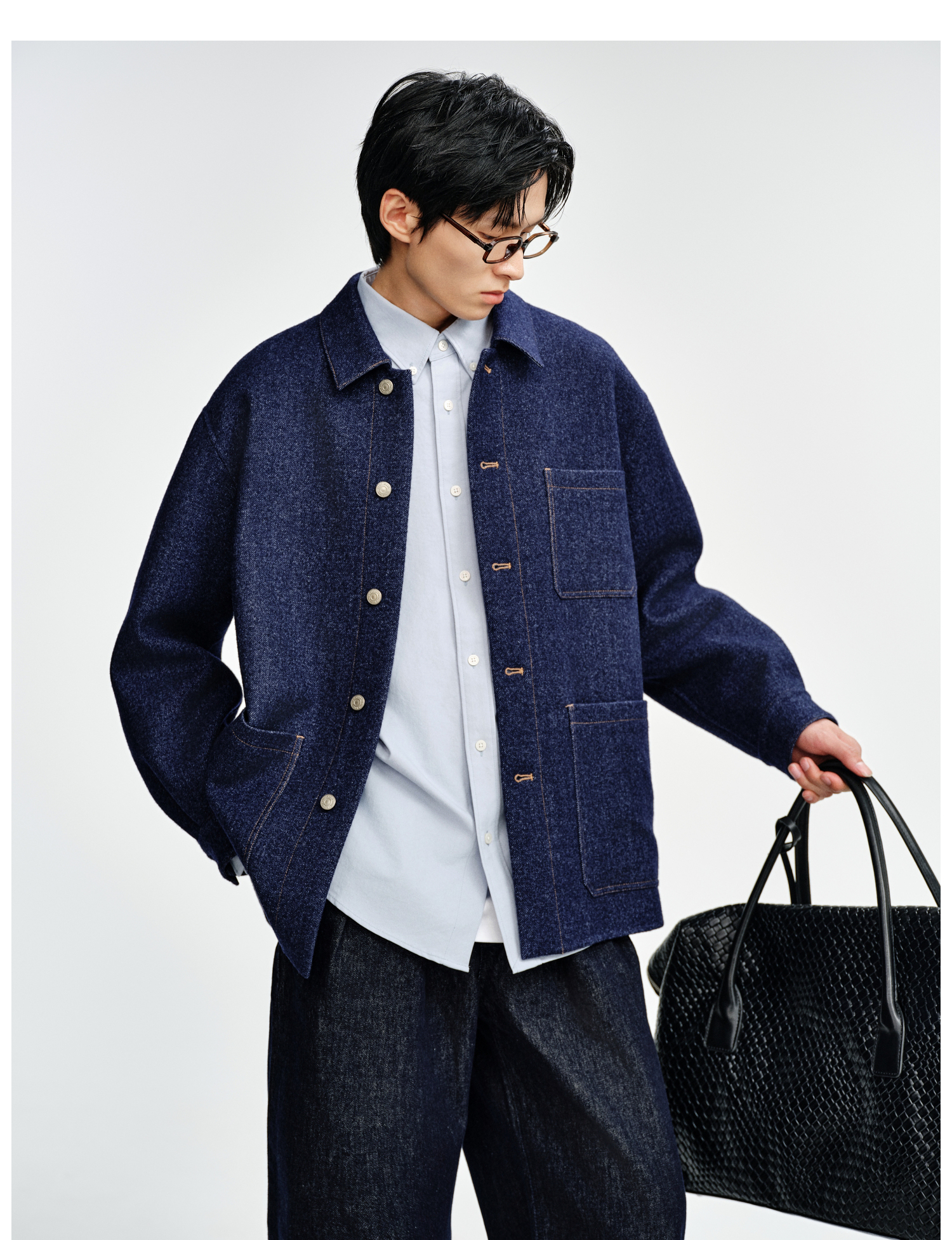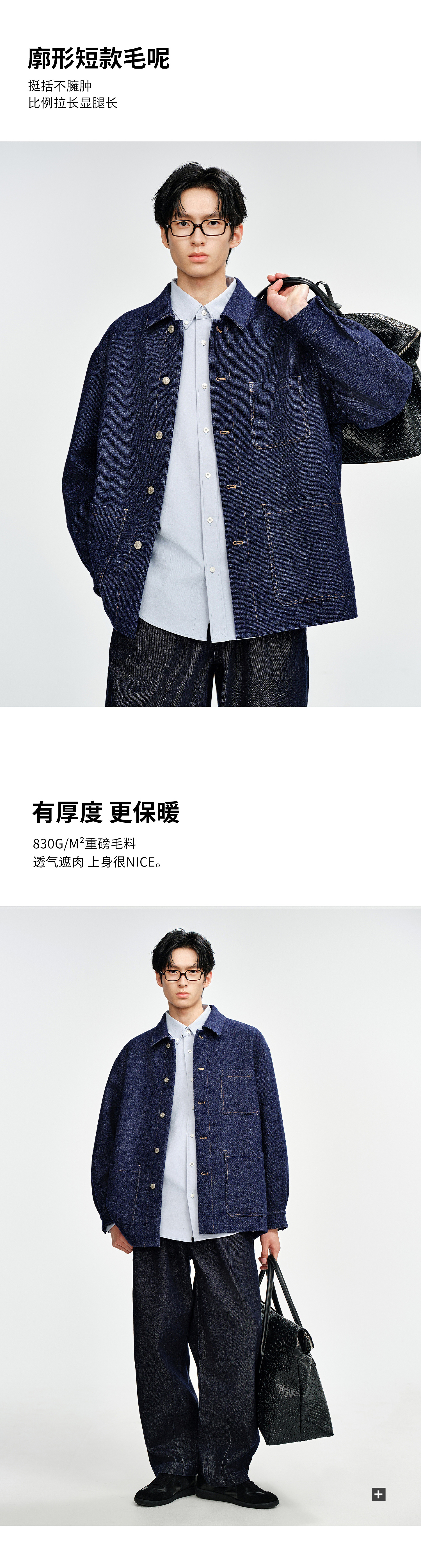 棉仓367811002-底特律丹宁风双面呢牛仔毛呢夹克男 秋冬重磅羊毛翻领外套