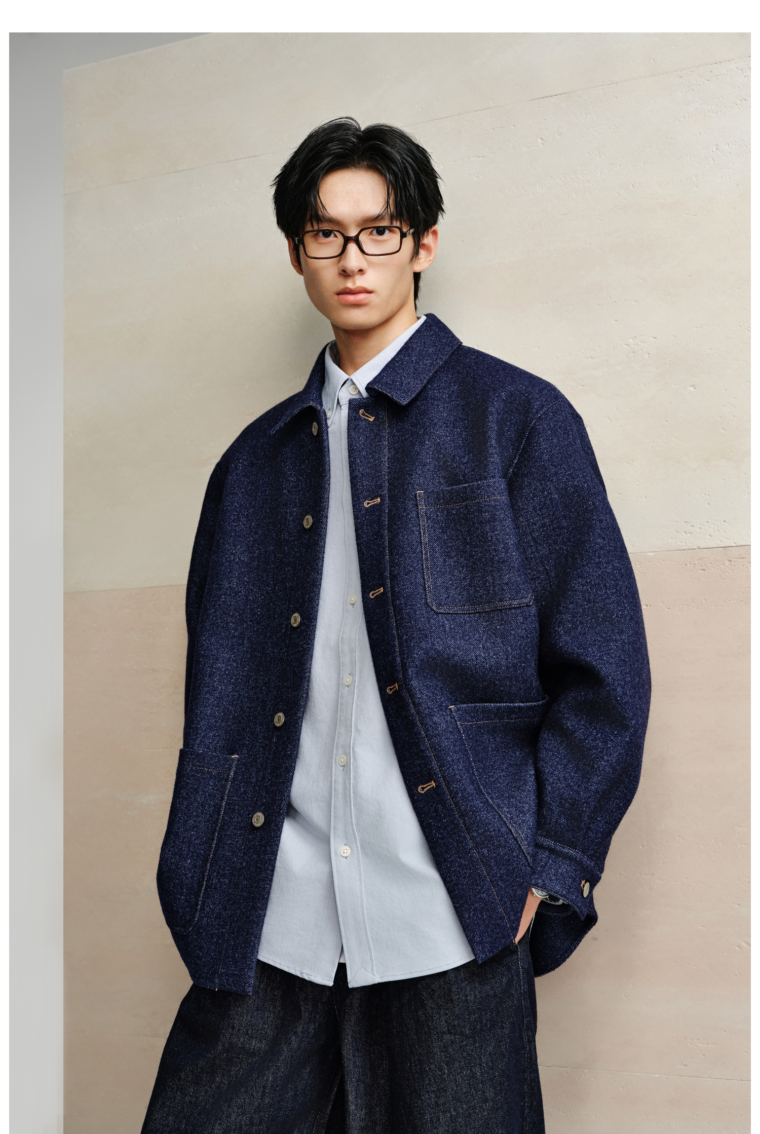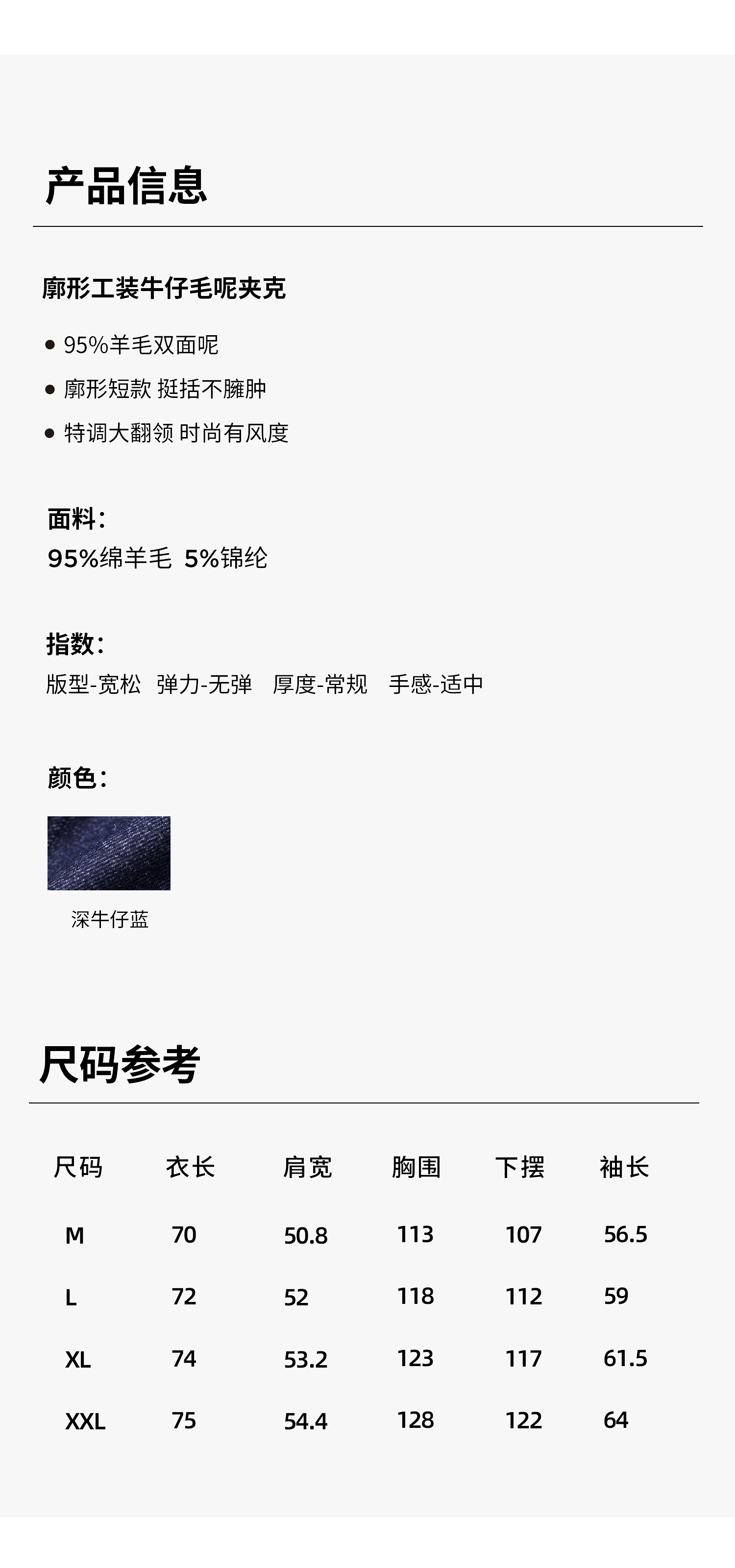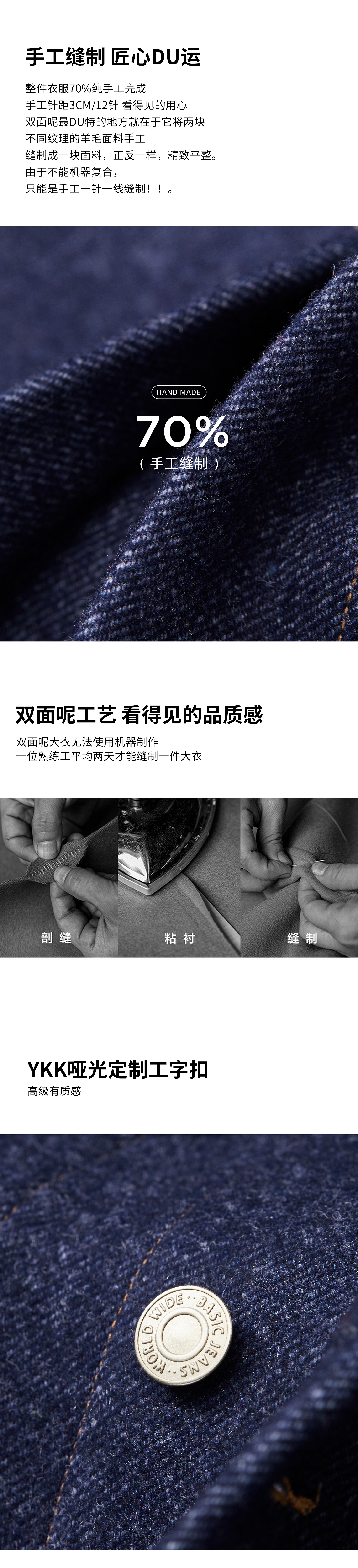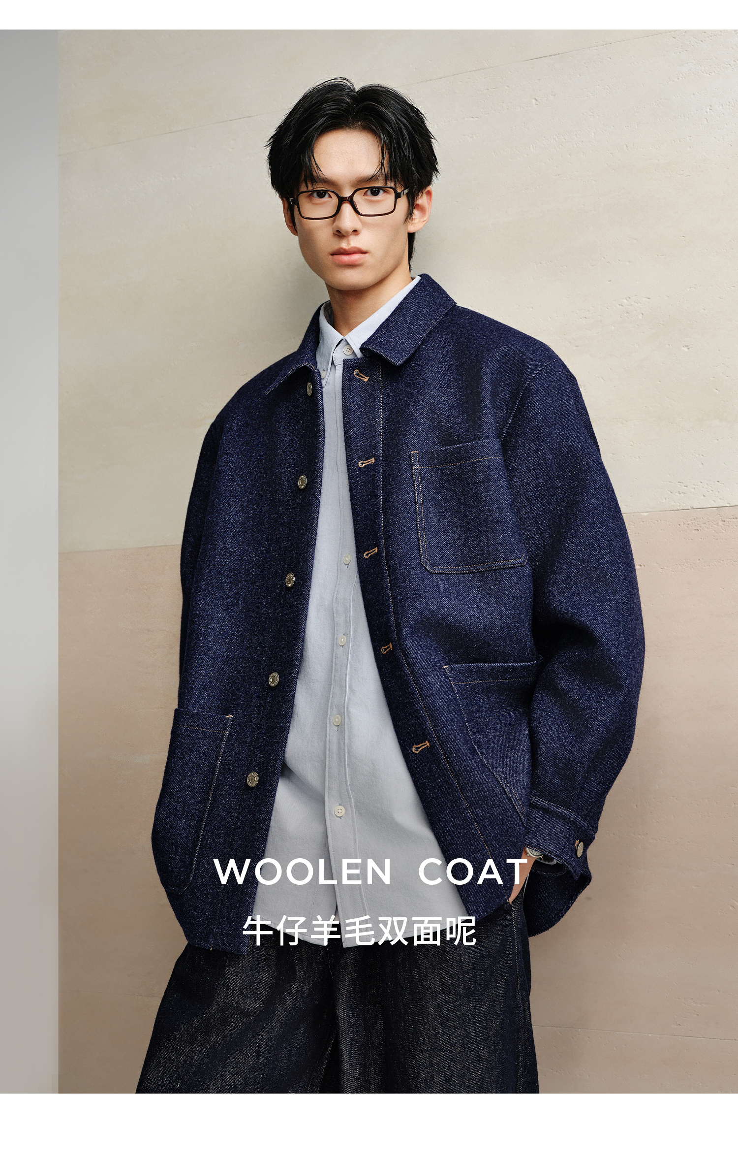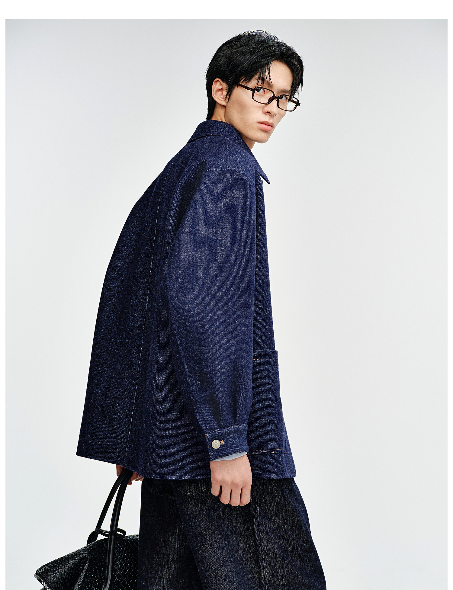 棉仓367811002-底特律丹宁风双面呢牛仔毛呢夹克男 秋冬重磅羊毛翻领外套