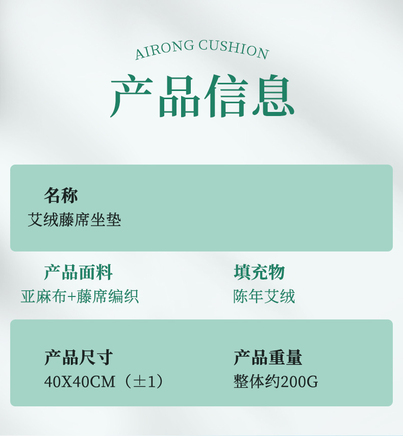 【买1送1,4色可选】夏季凉席艾绒坐垫 艾灸凉席两用款 深层渗透 自然凉感 足量艾绒填充 边坐边养护 藤席和艾绒可拆卸 拉链设计 40*40cm适合多数座椅