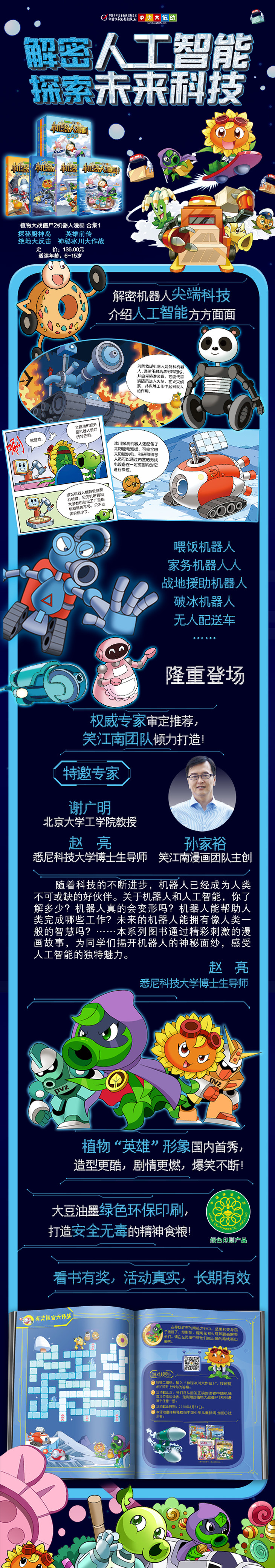 “机器人漫画”是中少总社推出的全新知识型漫画套系,延续“植物大战僵尸2”IP和笑江南漫画创作团队,带来全新机器人知识、人工智能、未来科技以及妙趣横生的冒险故事。重点新套系,持续出版中。