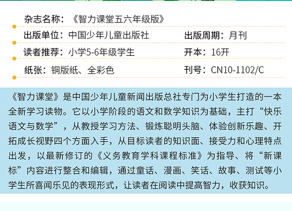 杂志名称:《智力课堂五六年级版》 | 定价:10元 |