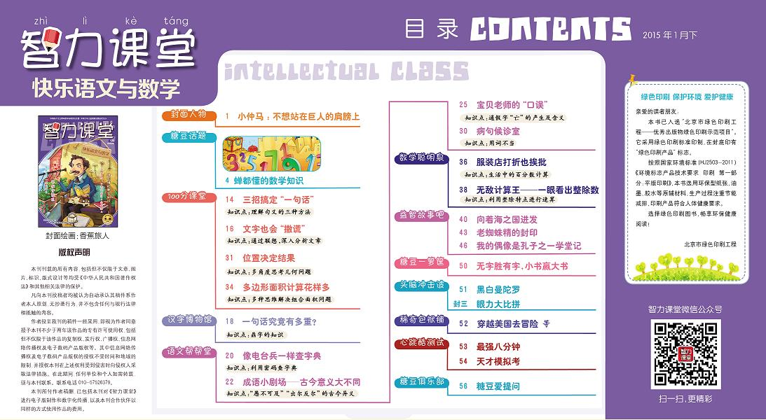 杂志名称:《智力课堂快乐语文与数学5-6年级》