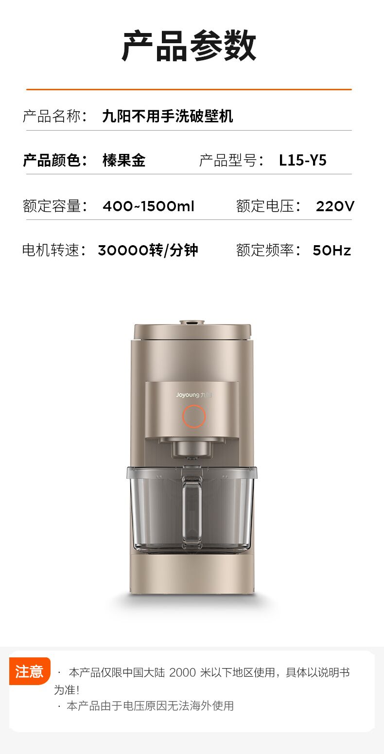 九阳(Joyoung)L15-Y5破壁机家用1.5L预约免滤免手洗多功能豆浆机榨汁机