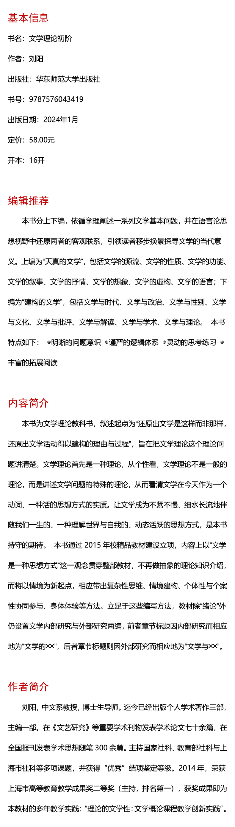 文学理论初阶 文学理论教科书 文学基本问题 刘阳