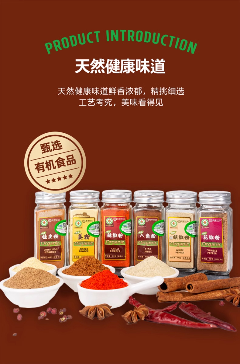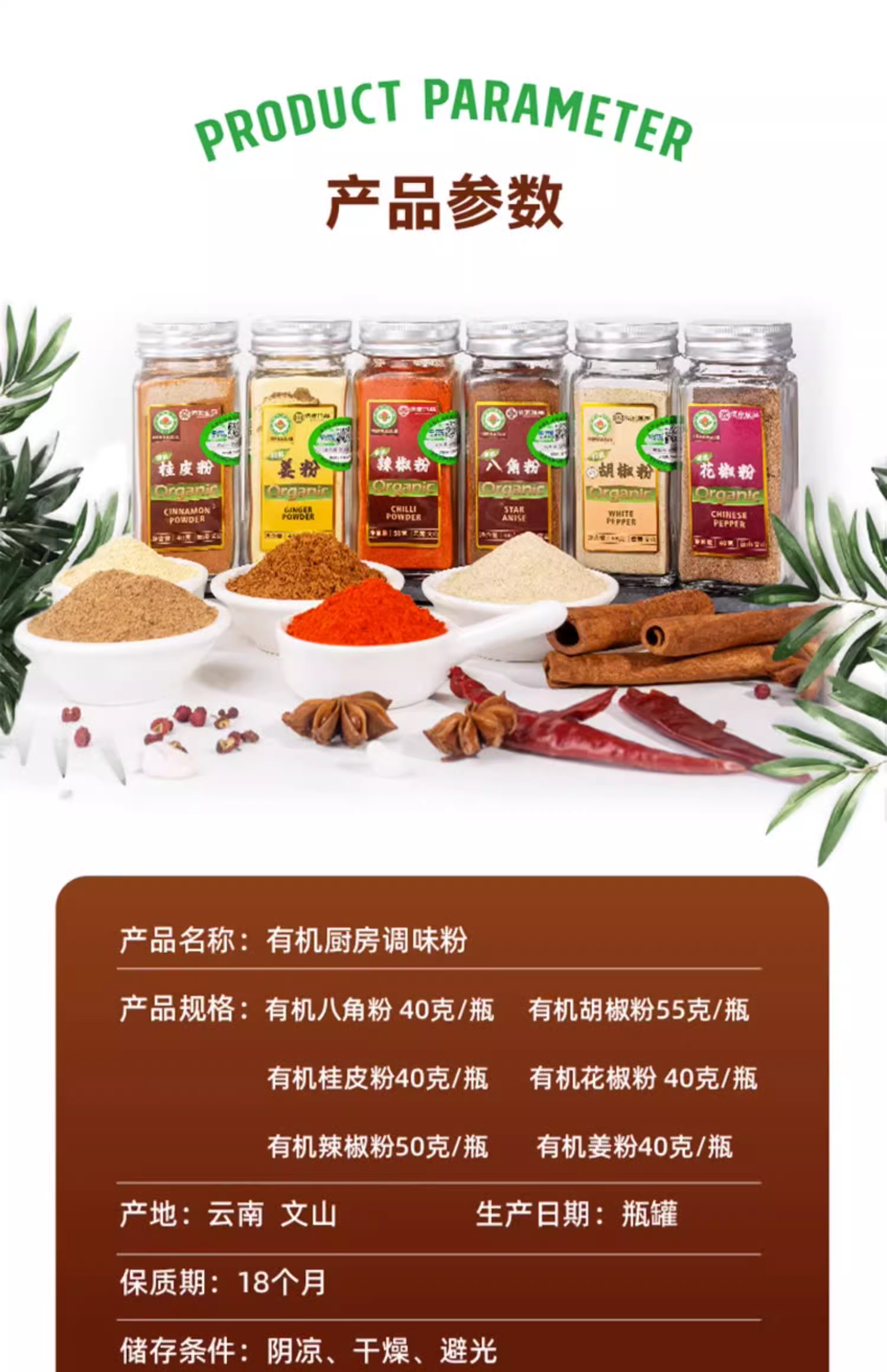 云南有机花椒粉白胡椒粉五香粉 烧烤家庭调料小瓶装组合