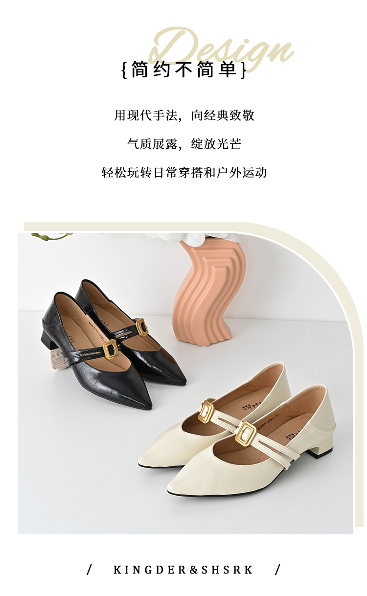 经典鲨2025春季新品百搭优雅尖头中粗跟气质日常通勤单鞋女KG20-517011