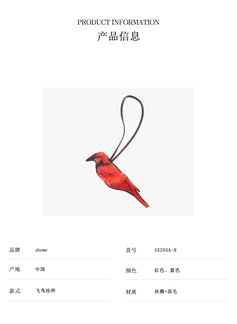 sheme新款时尚刺绣小鸟挂件