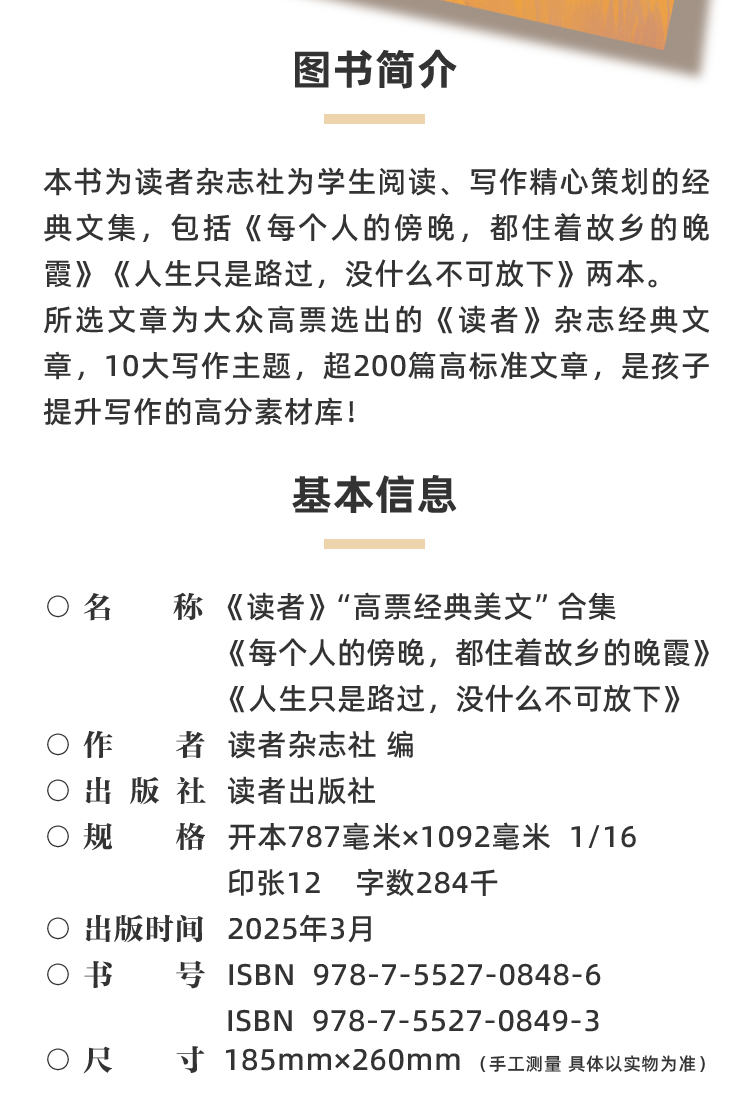 读者《高票经典美文》 单本/套装自选 《每个人的傍晚,都住着故乡的晚霞》 、《人生只是路过,没什么不可放下》
