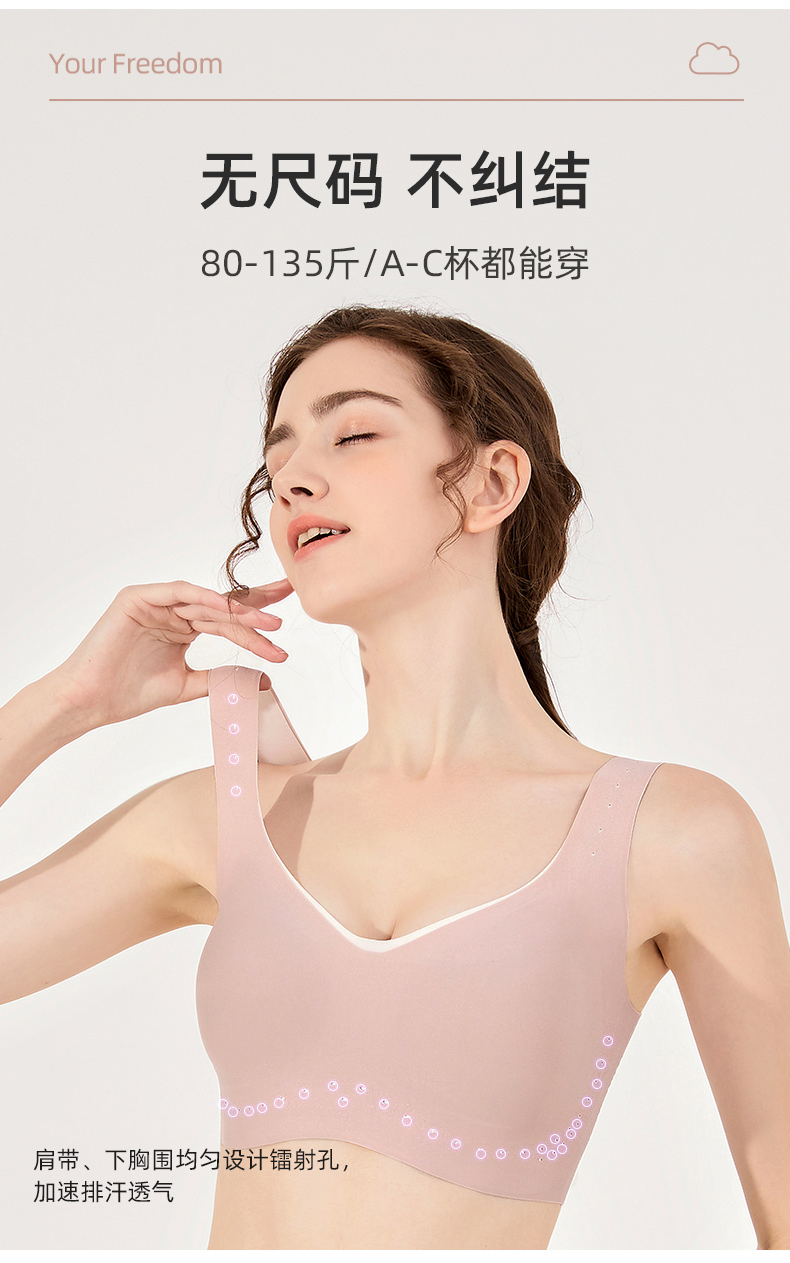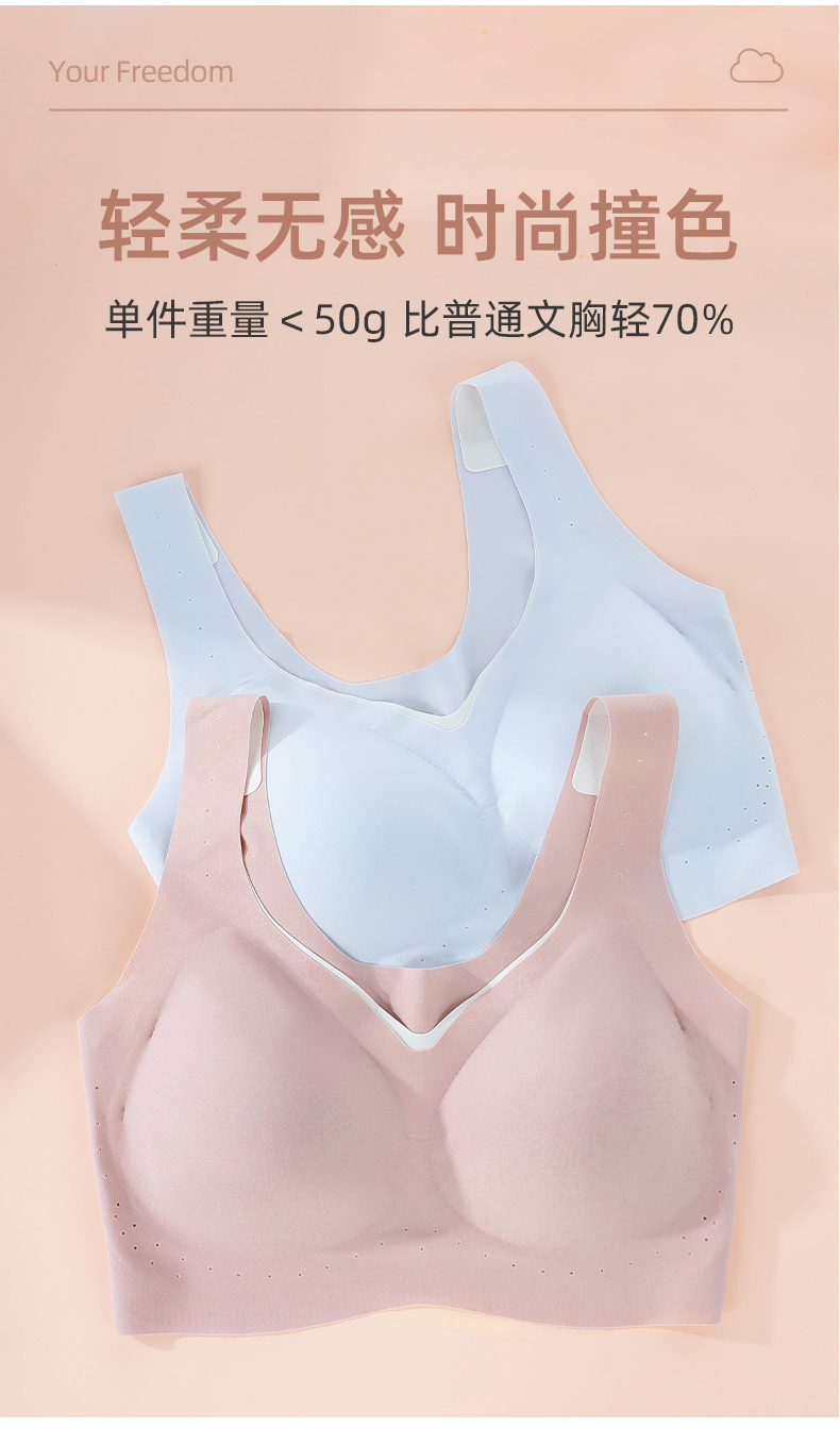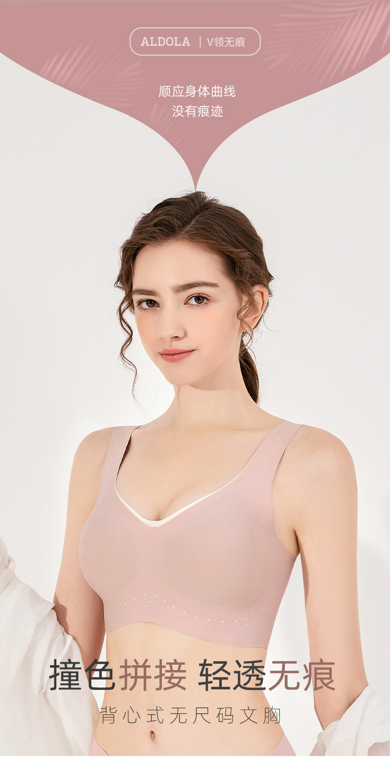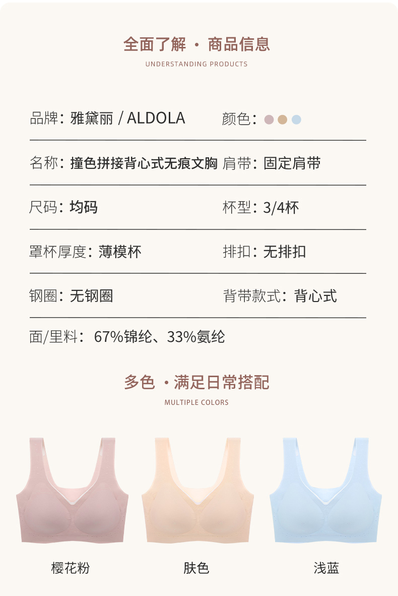 雅黛丽内衣女无尺码背心式文胸无钢圈无痕舒适薄款撞色拼接胸罩女