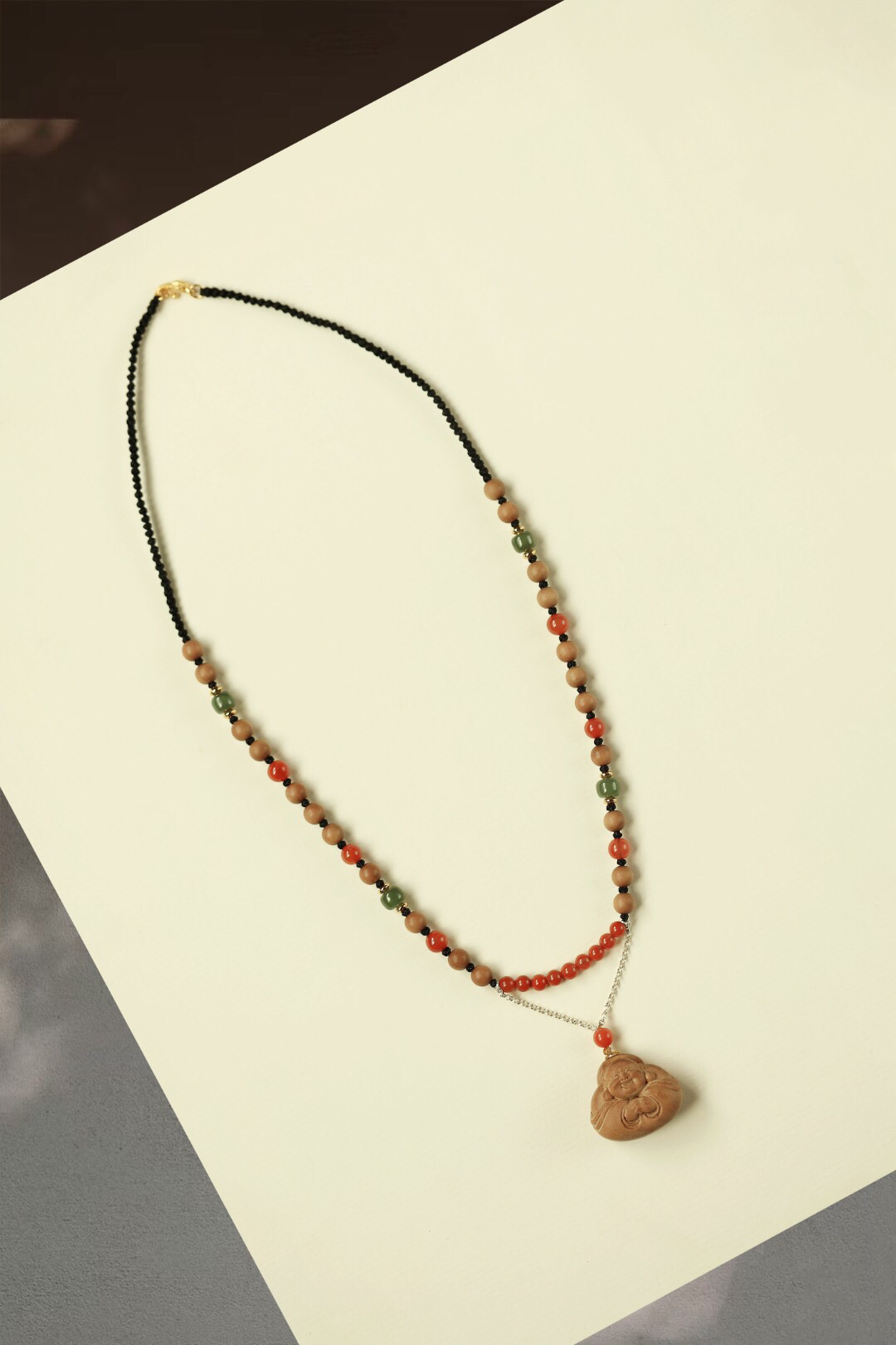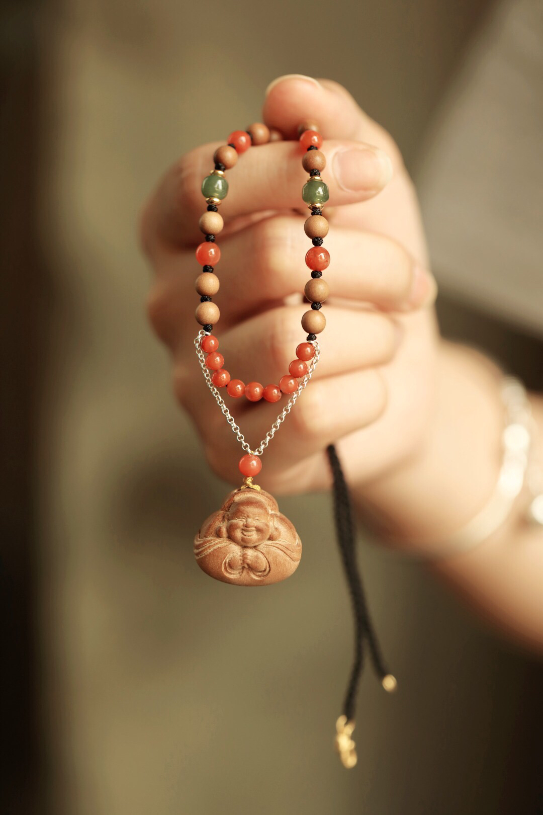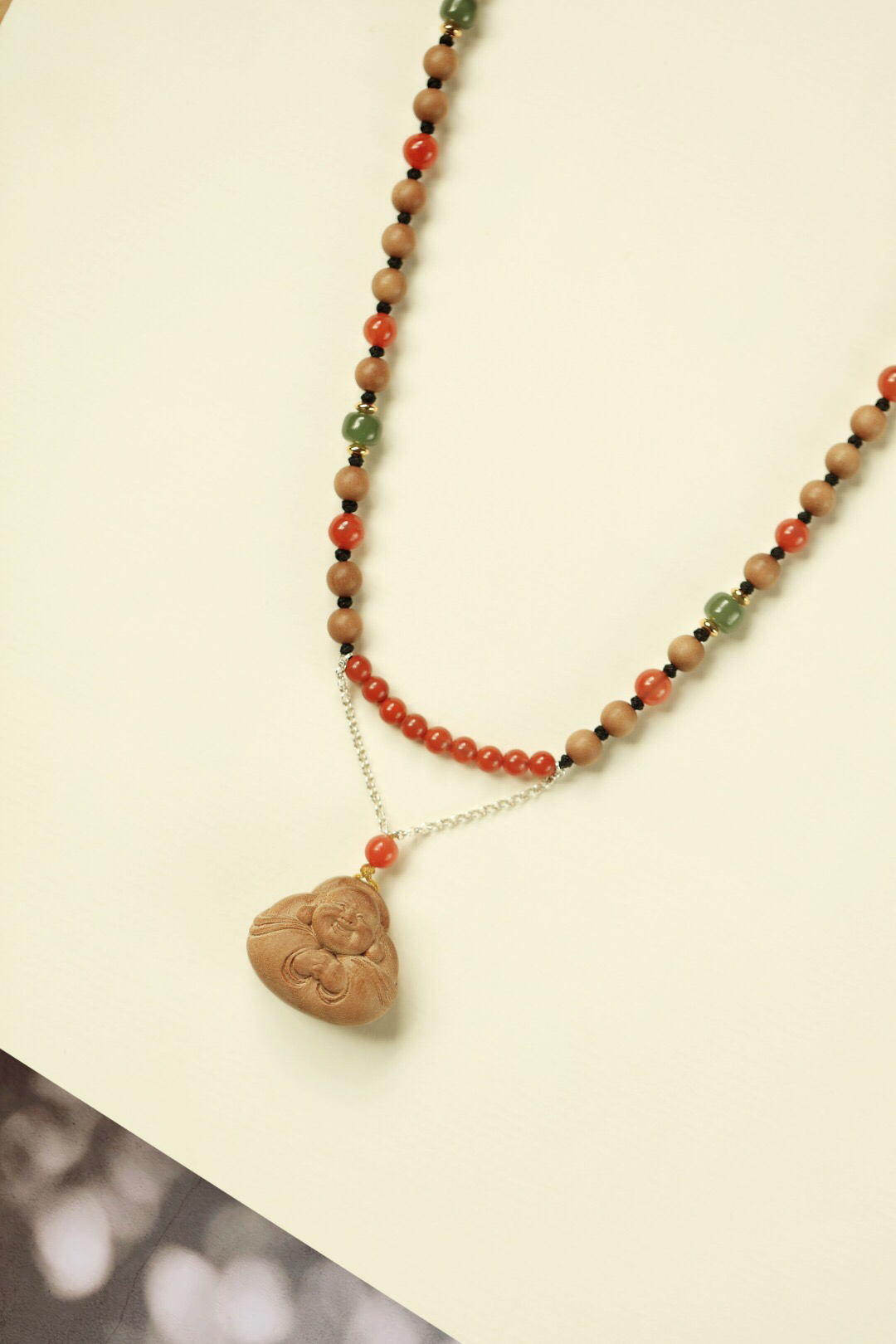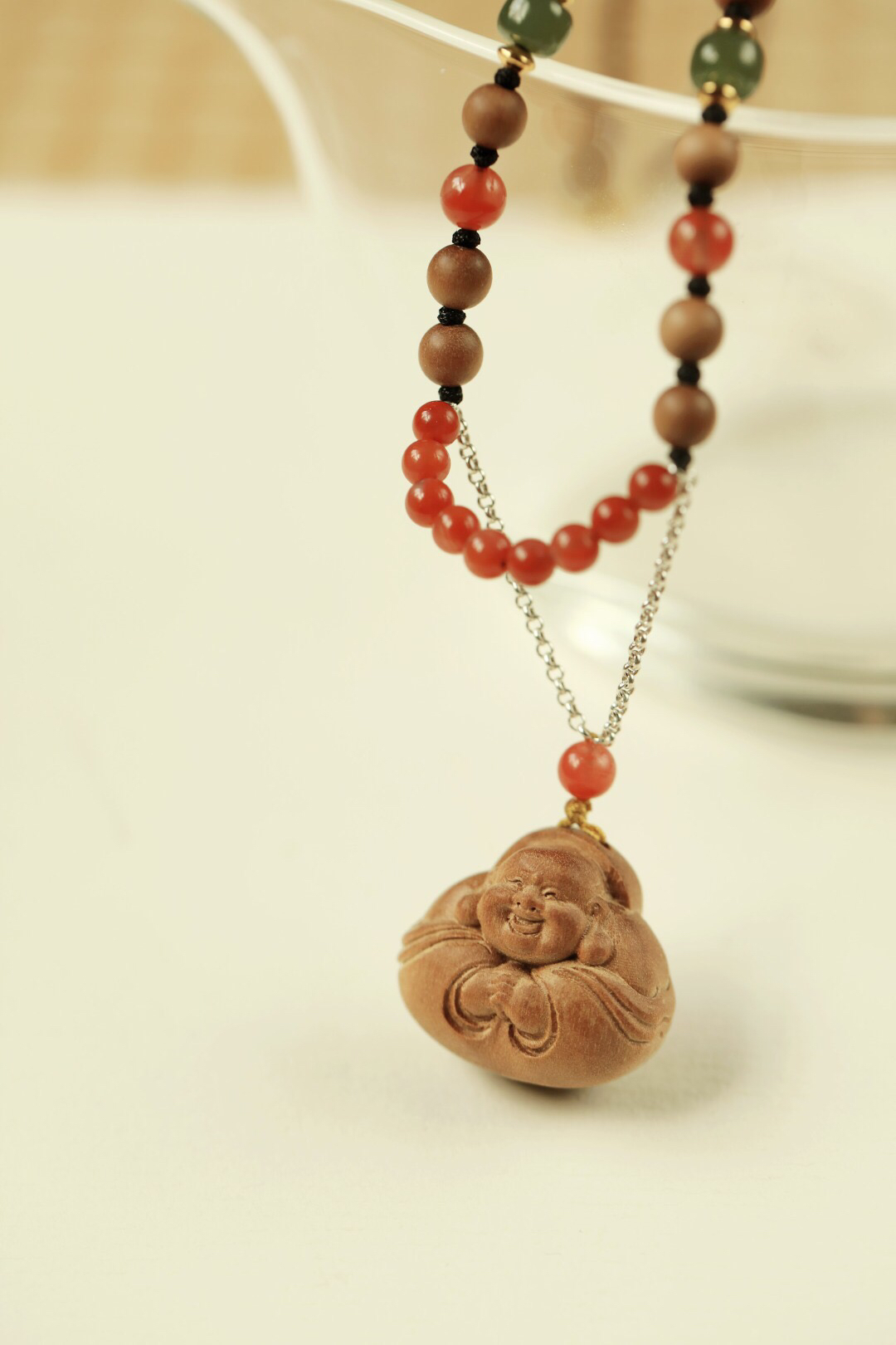 【青山特惠】5mm22颗山檀香 | 弥勒佛·吊坠 搭配:和田玉、南红、925银镀金s4