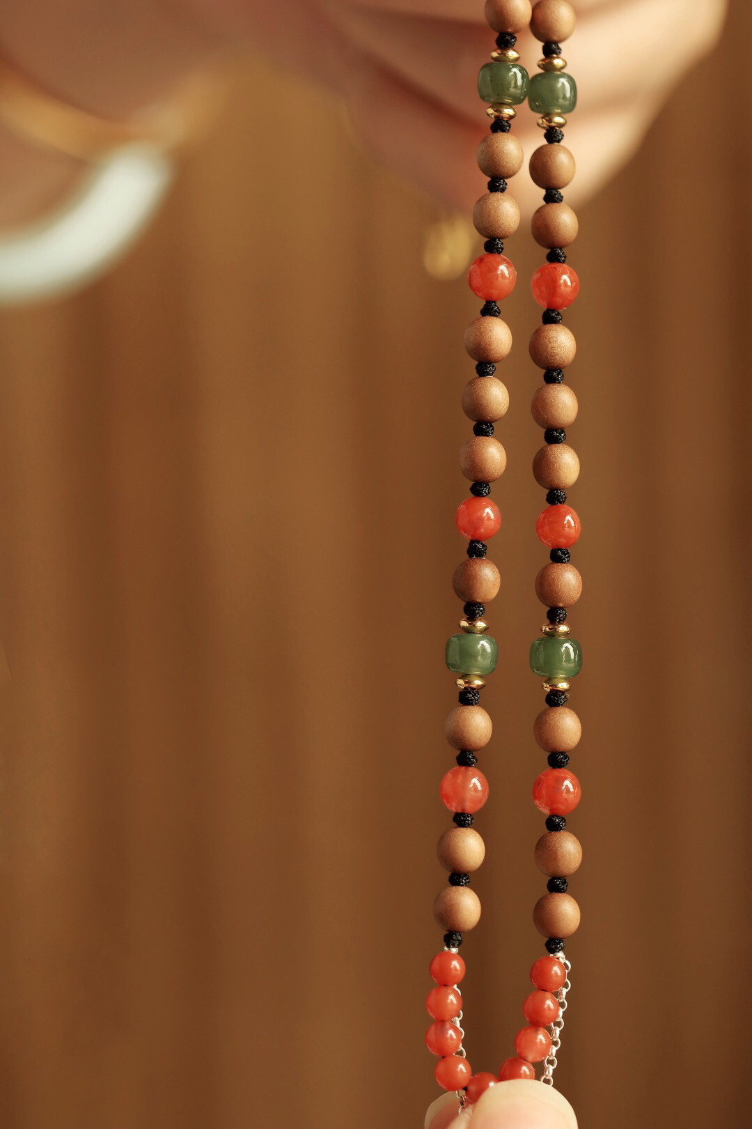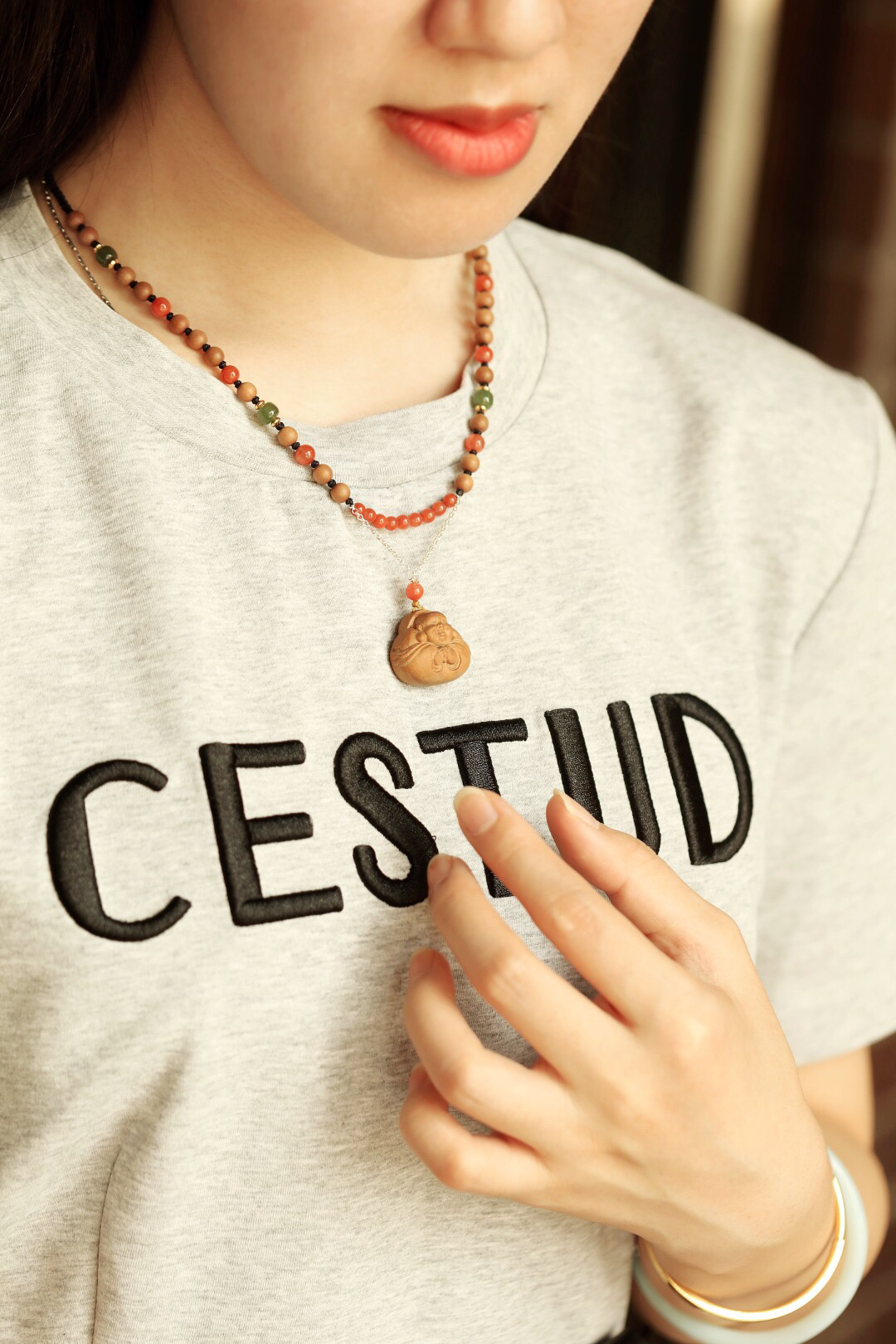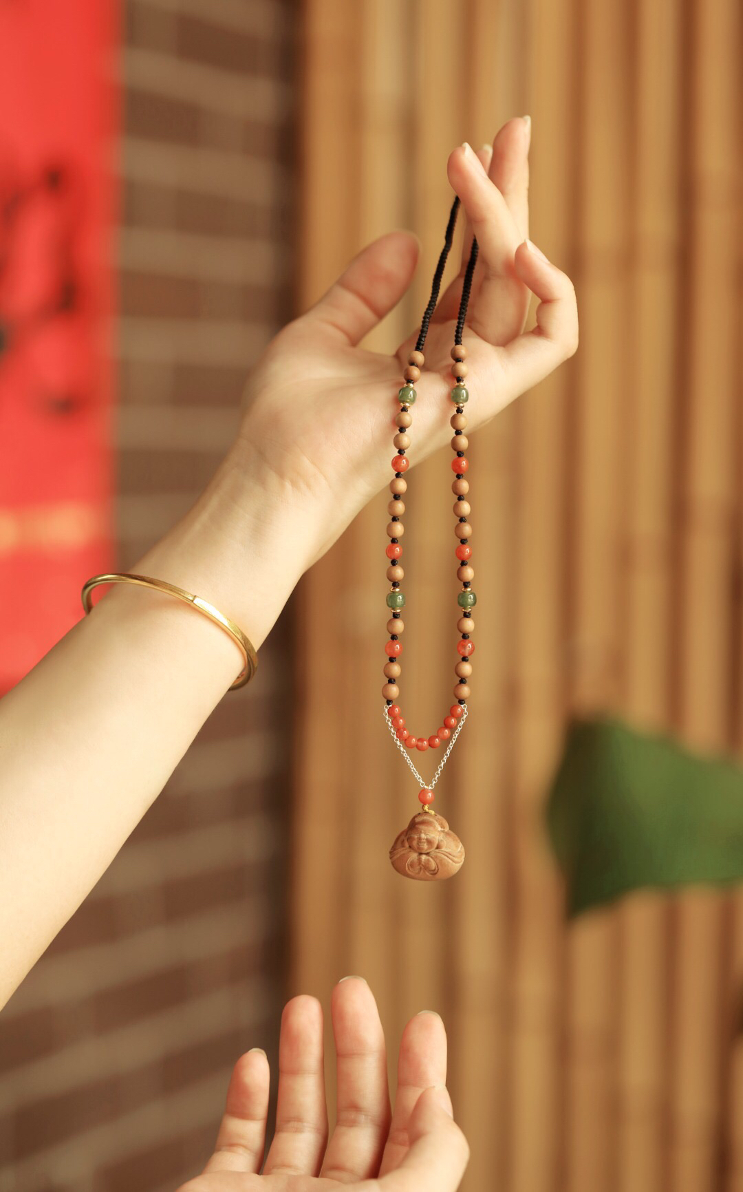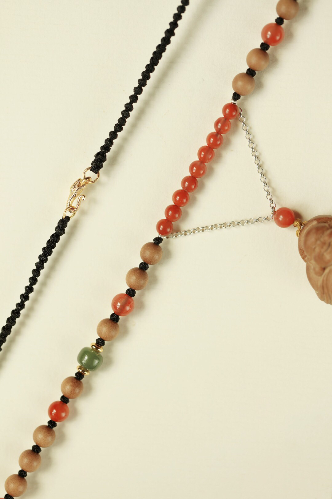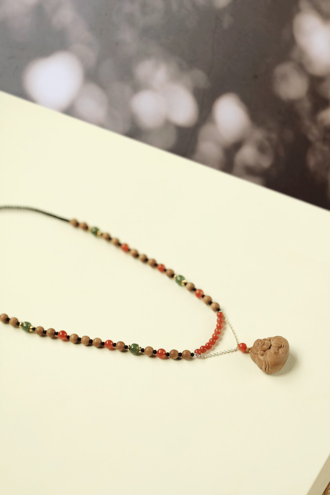 【青山特惠】5mm22颗山檀香 | 弥勒佛·吊坠 搭配:和田玉、南红、925银镀金s4