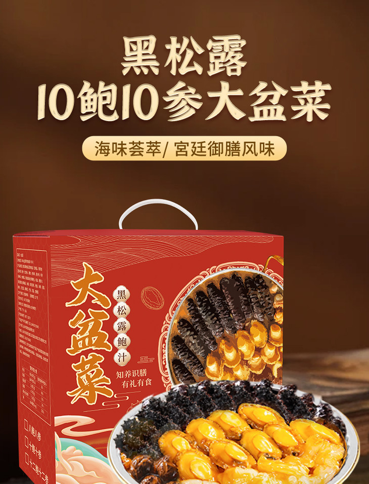 【十参十鲍❗️黑松露鲍汁大盆菜】净含量2000g甄选品质原料,鲍鱼/海参/花胶/海螺片/林芝菇/鹰嘴豆/竹耳丝/花菇/杏鲍菇等 ,冷链配送到家,中秋节日春节过年团圆家宴送礼佳品L