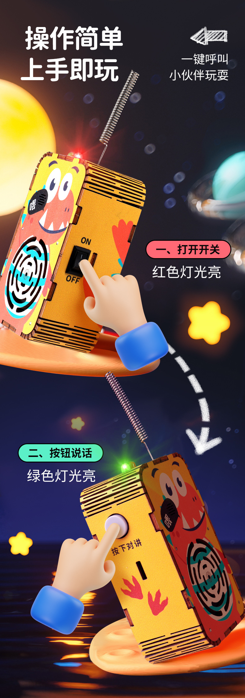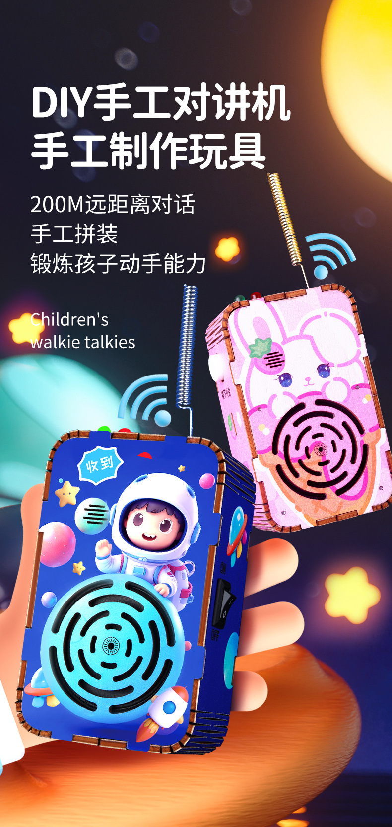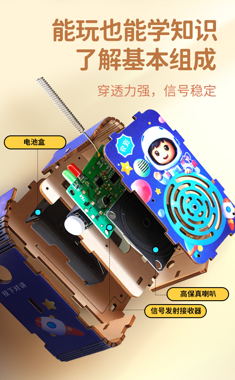 【手工制作玩具!DIY手工对讲机】200m远距离对话,锻炼孩子动手能力,木板拼装无线传呼亲子科教益智玩具L