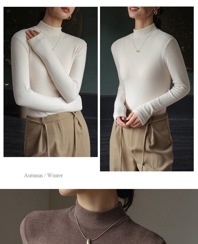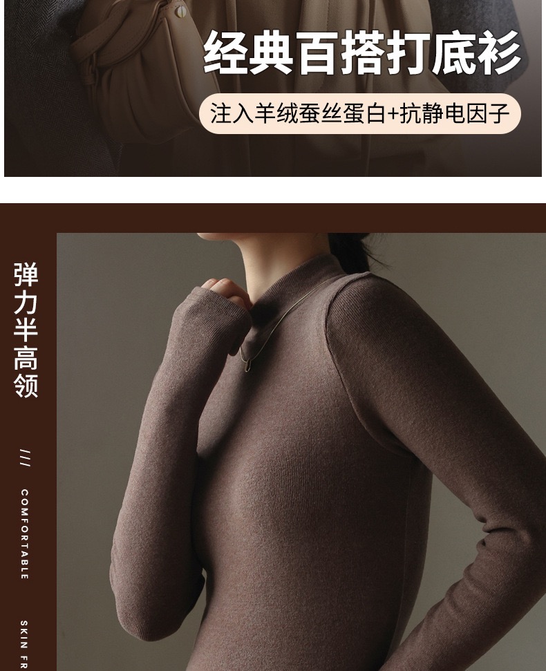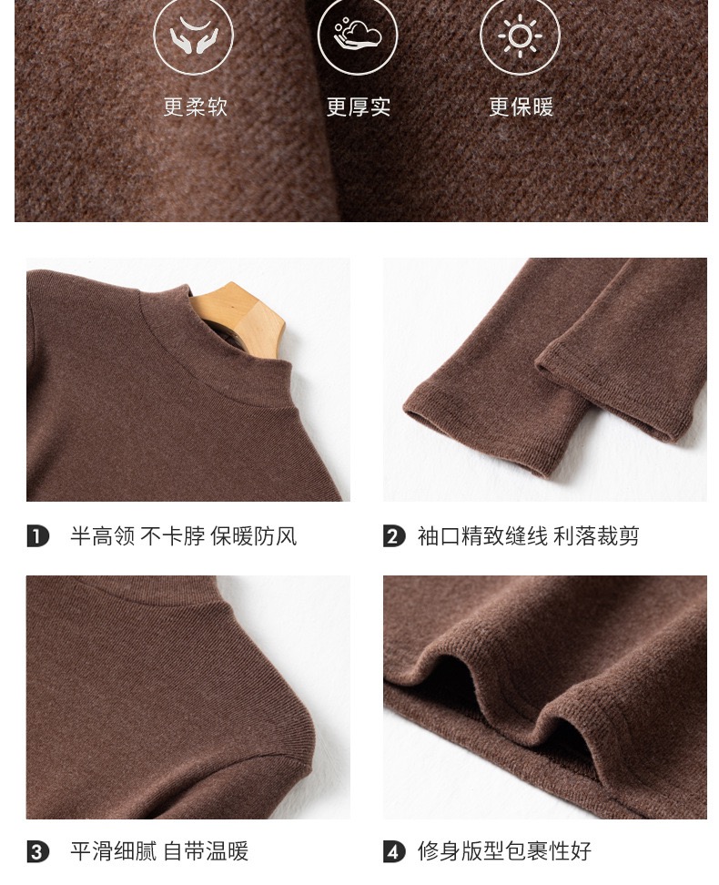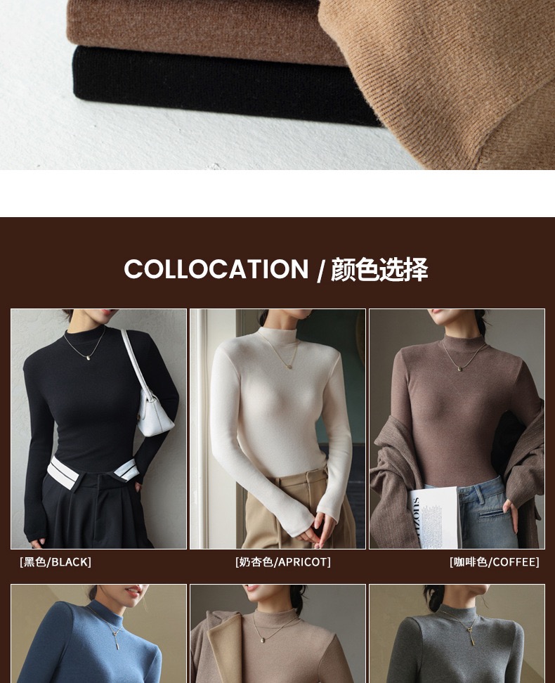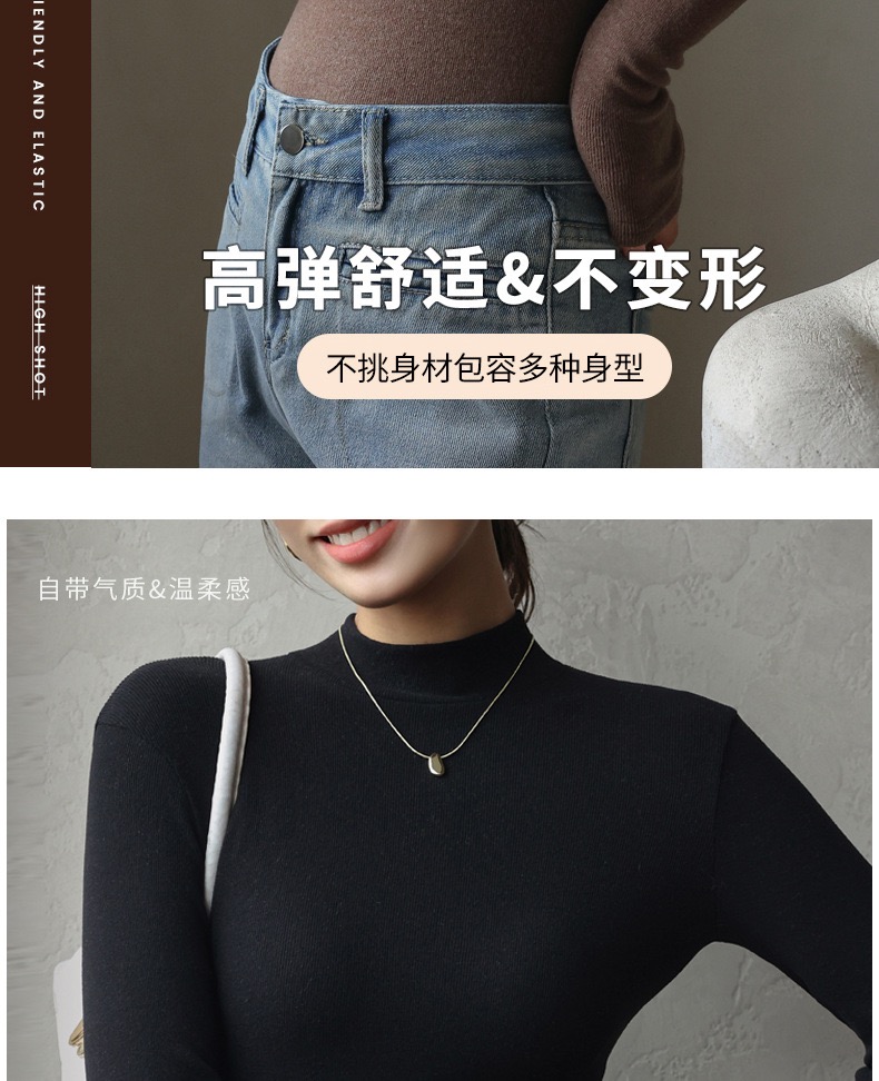 Q仿羊绒半高领中领女内搭秋冬季加薄绒修身长袖打底衫FS 1675