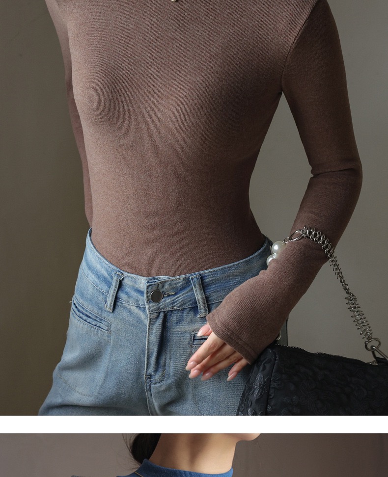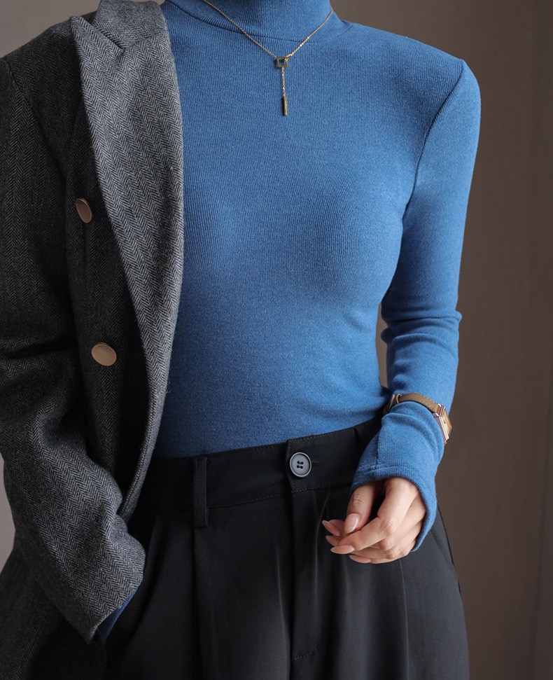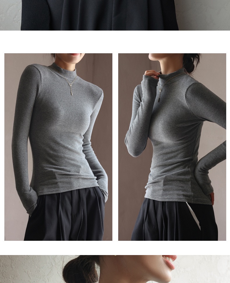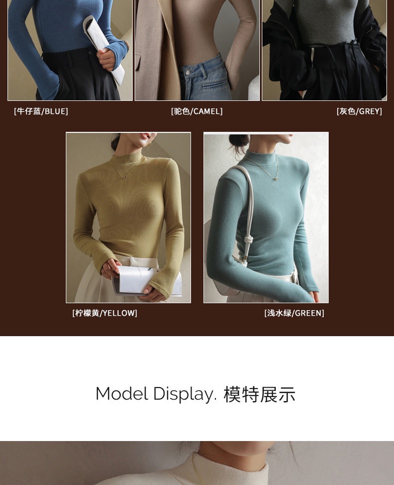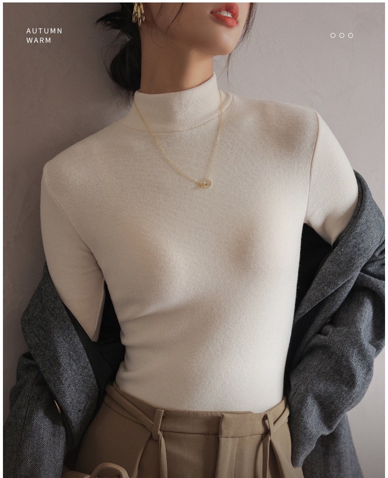 Q仿羊绒半高领中领女内搭秋冬季加薄绒修身长袖打底衫FS 1675