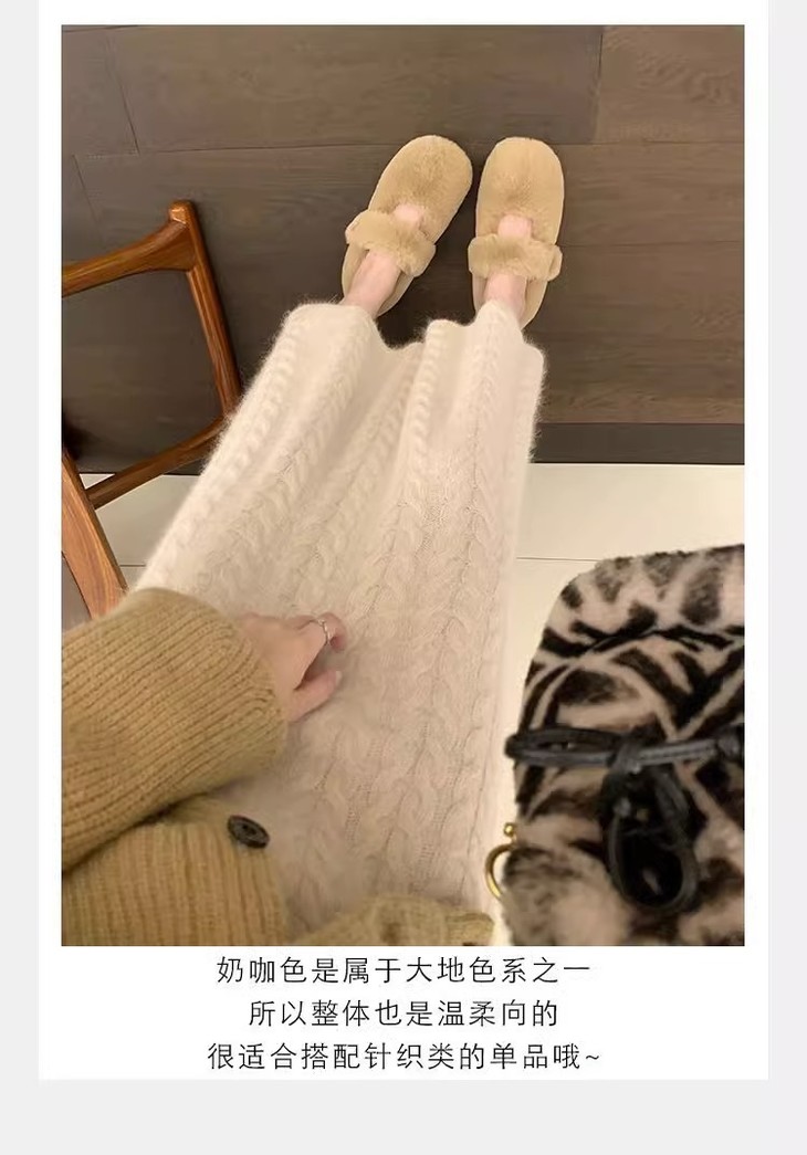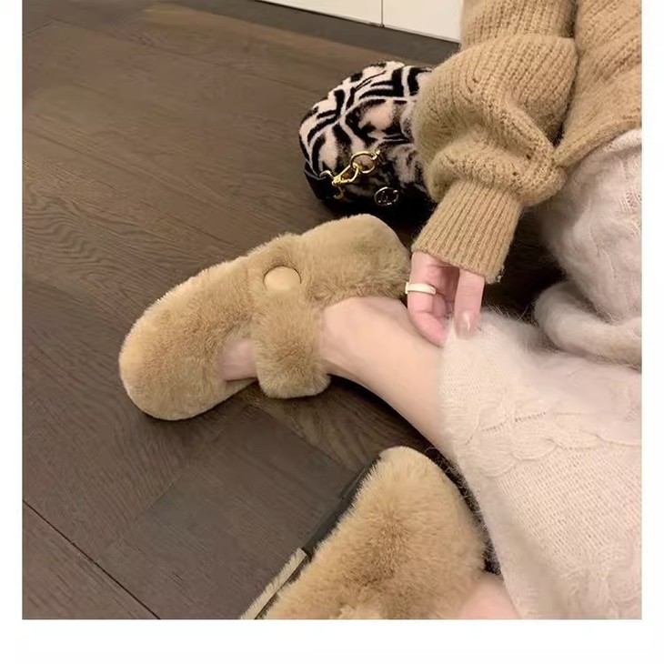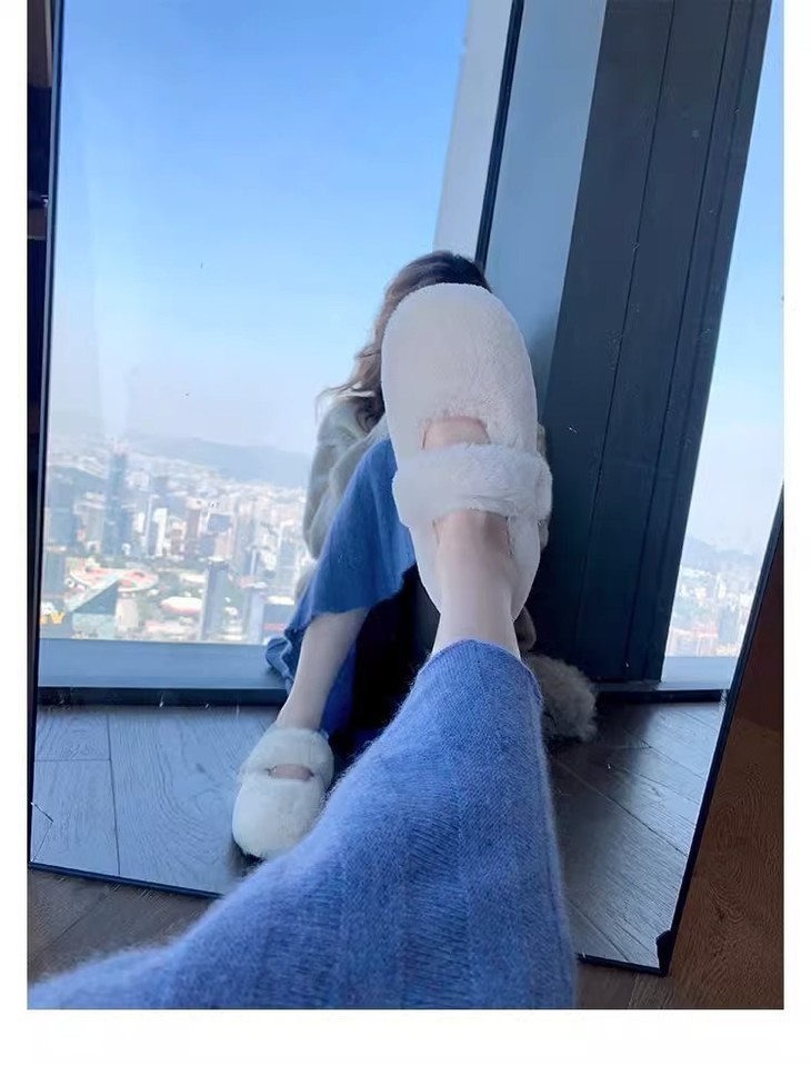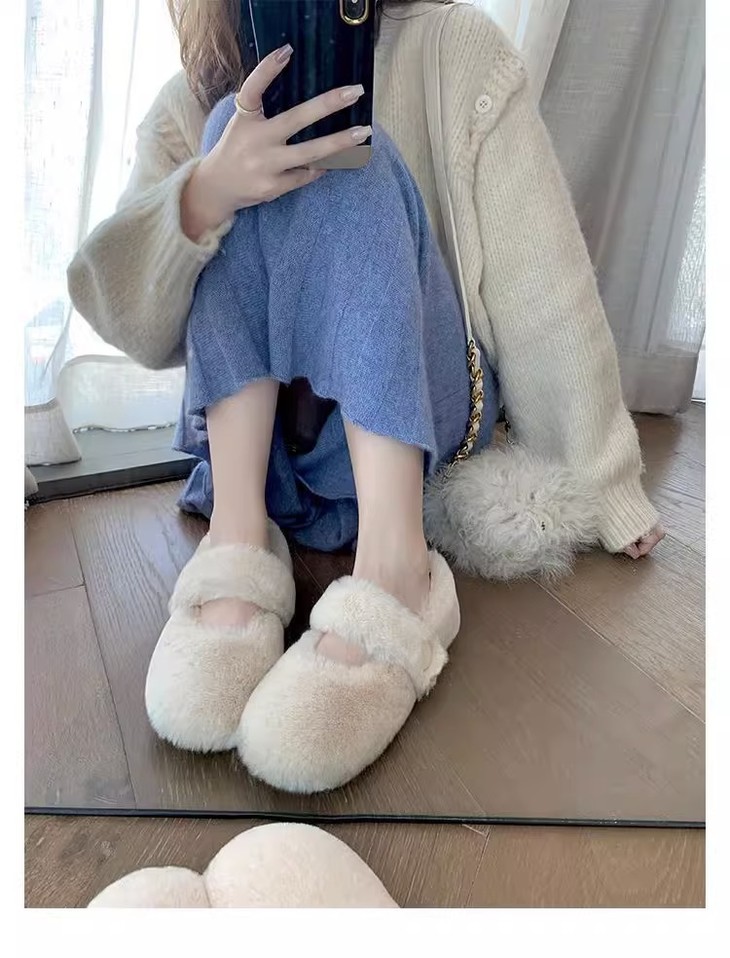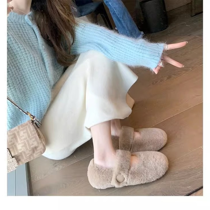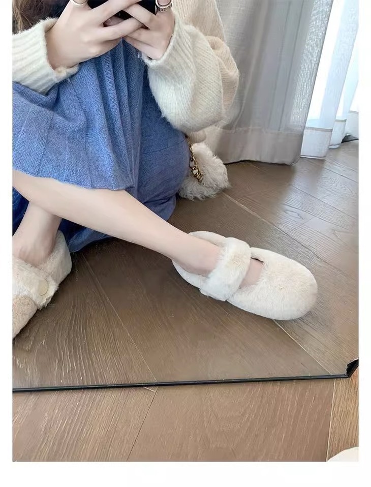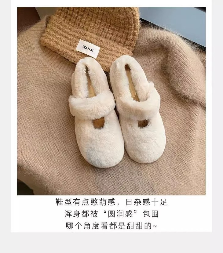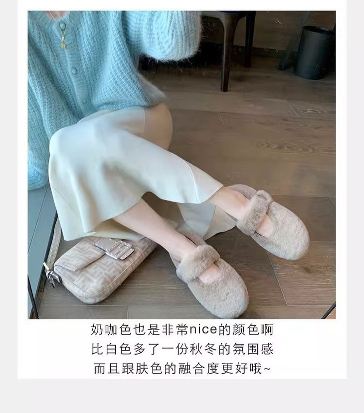 法式晚风毛毛鞋 平底懒人一脚蹬 加绒玛丽珍毛毛鞋