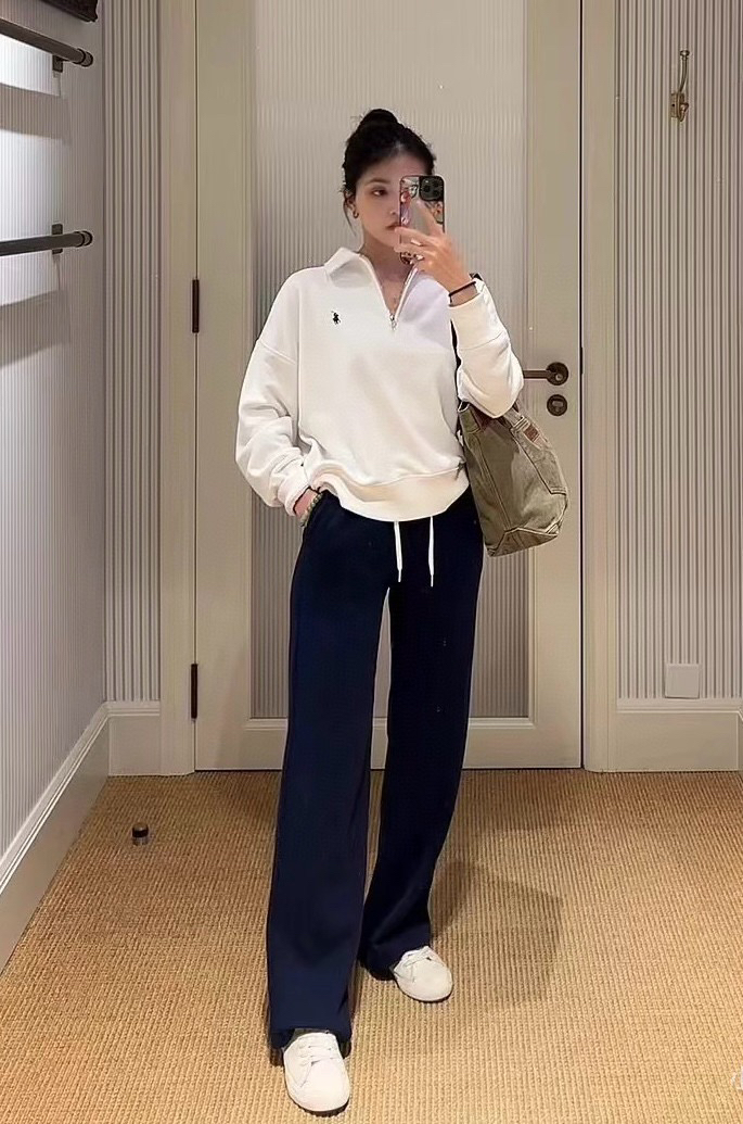 搭配同款拉链卫衣,妥妥慵懒老钱风