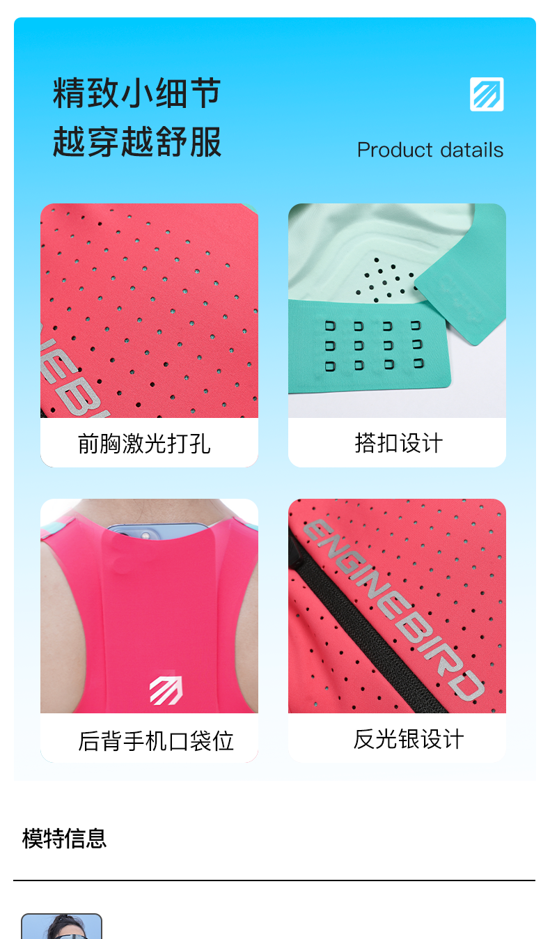 - 始创于2012年,引擎鸟户外(深圳)有限公司旗下的中国原创专业跑步服装品牌,以国际一线专业标准设计、研发、生 面世以来,引擎鸟不断追求产品的轻量化革命和特种运动的专业性,持续推出符合运动科学和大众需求