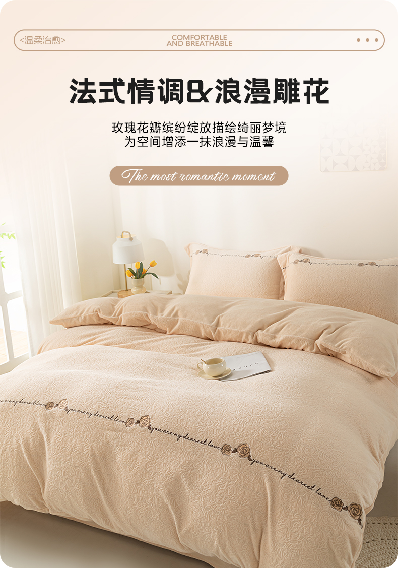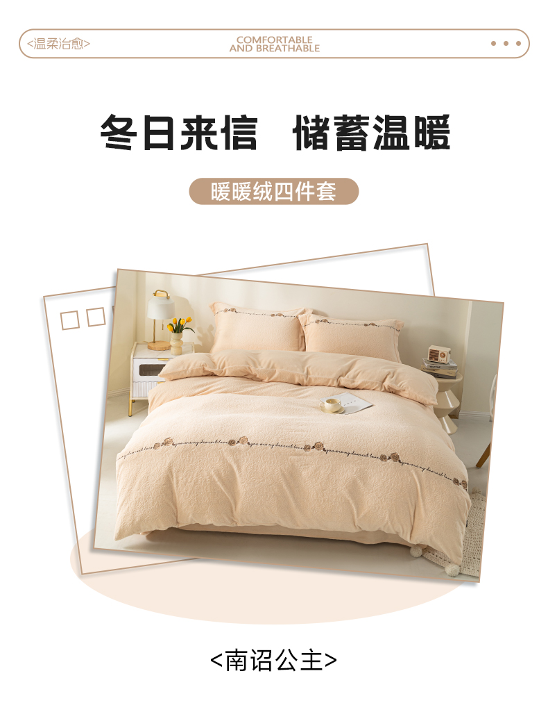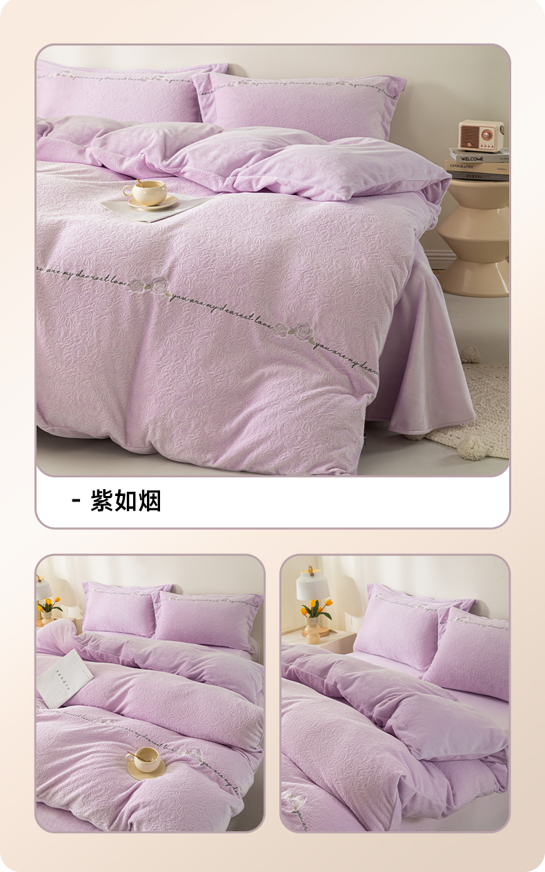 多喜爱 暖暖绒刺绣款保暖四件套南诏公主/紫如烟hl【高克重暖绒】【一触即暖】【精美刺绣】黑科技导电丝 不易掉毛 可水洗