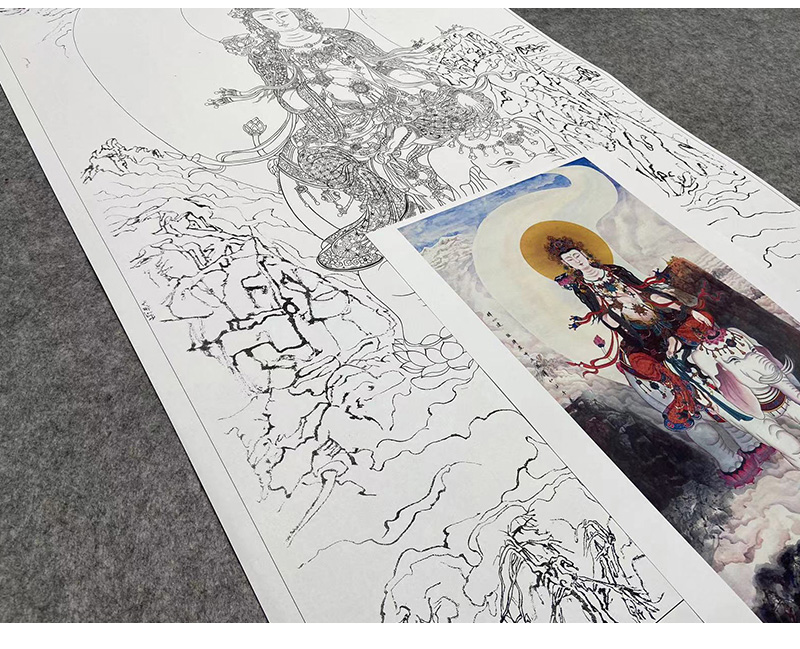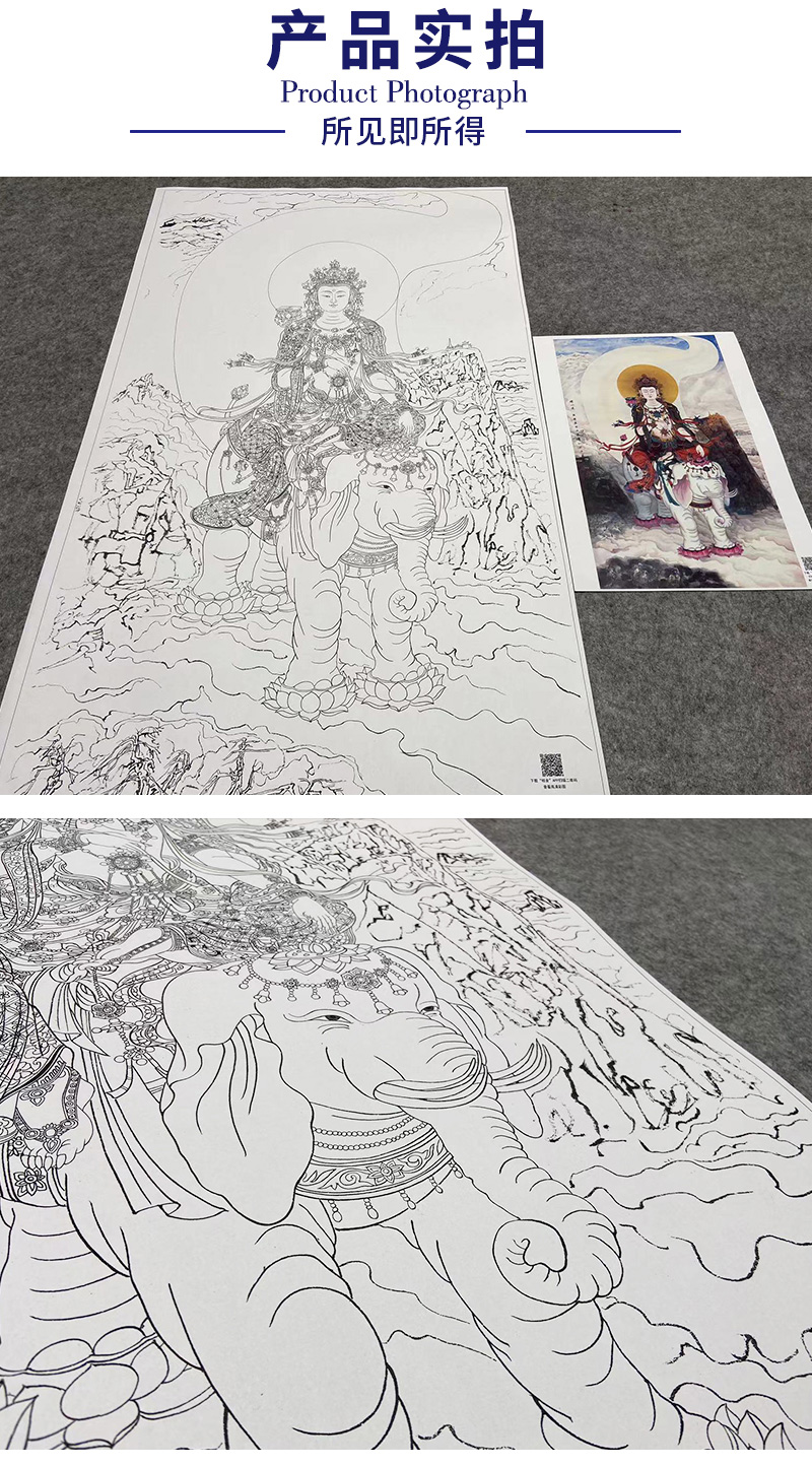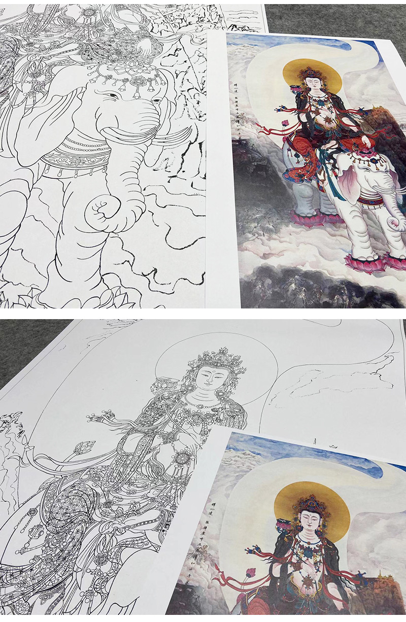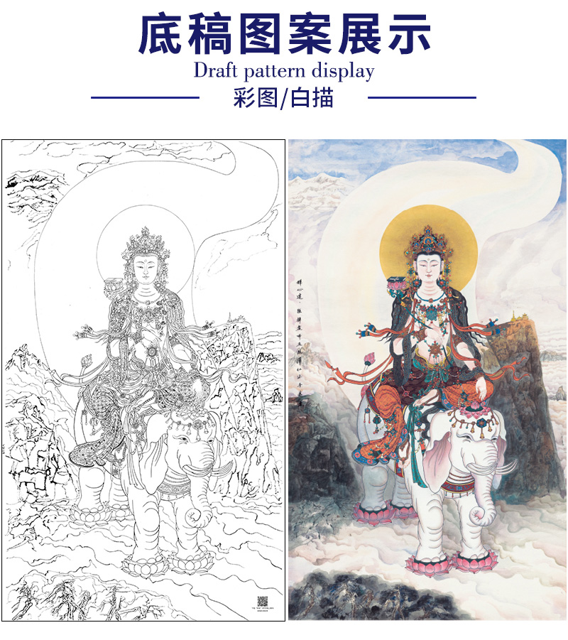 【大彩图】工笔人物白描底稿《菩贤菩萨》高清打印稿人物线稿SF03