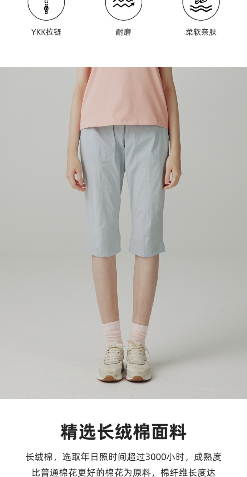 OZARK奥索卡户外休闲7分裤女款夏季新款弹力速干棉质短裤