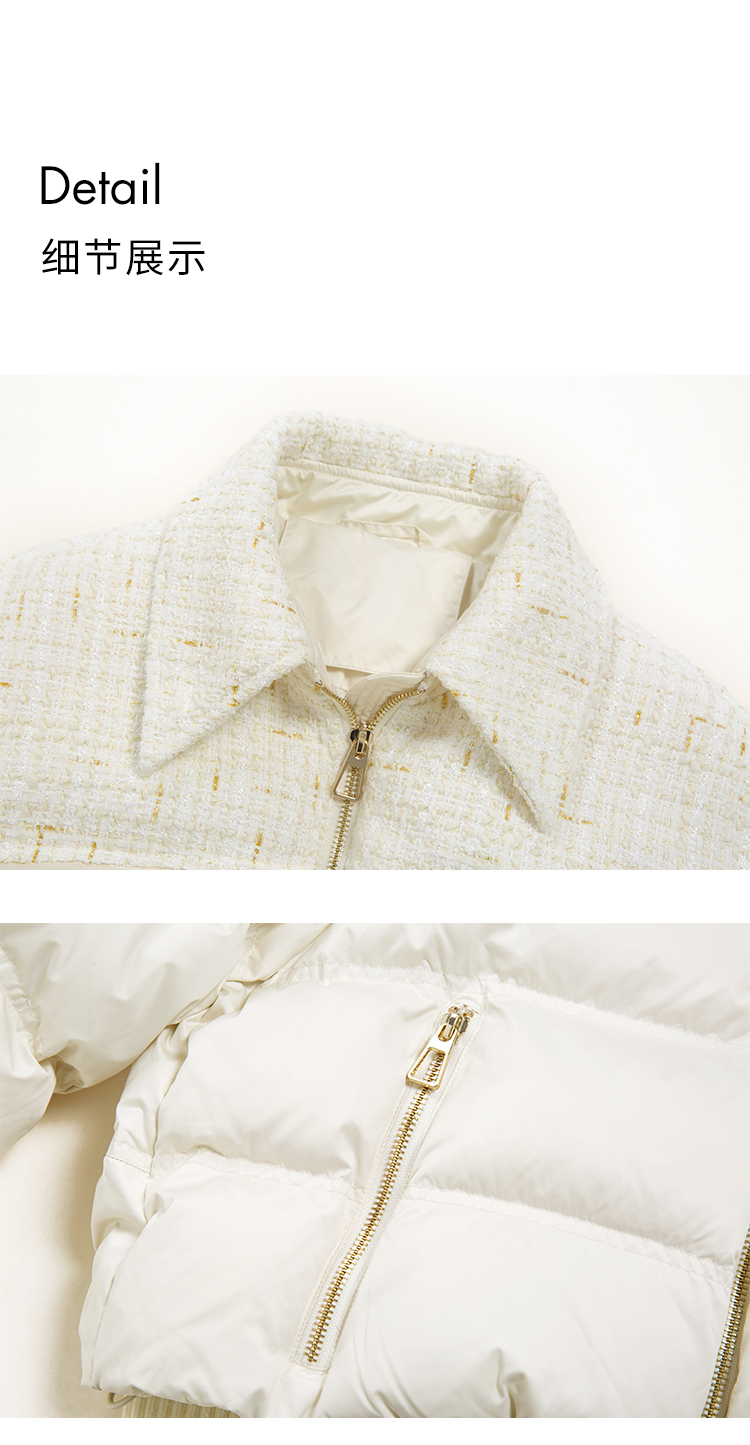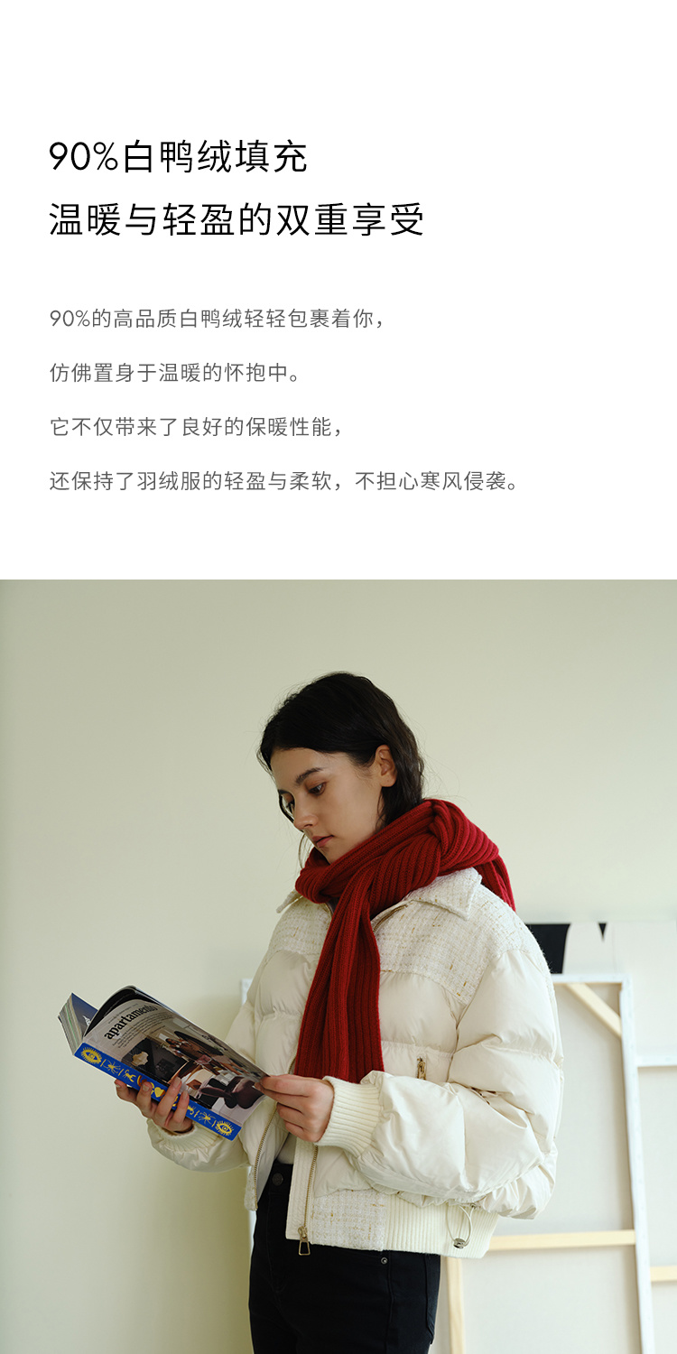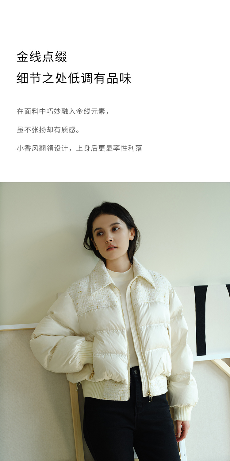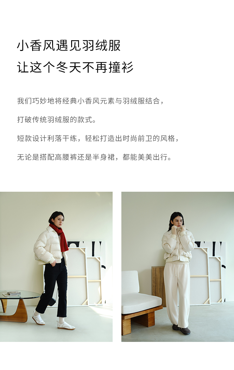 HeyDress小香风羽绒服女冬季法式复古设计感白鸭绒保暖白色外套