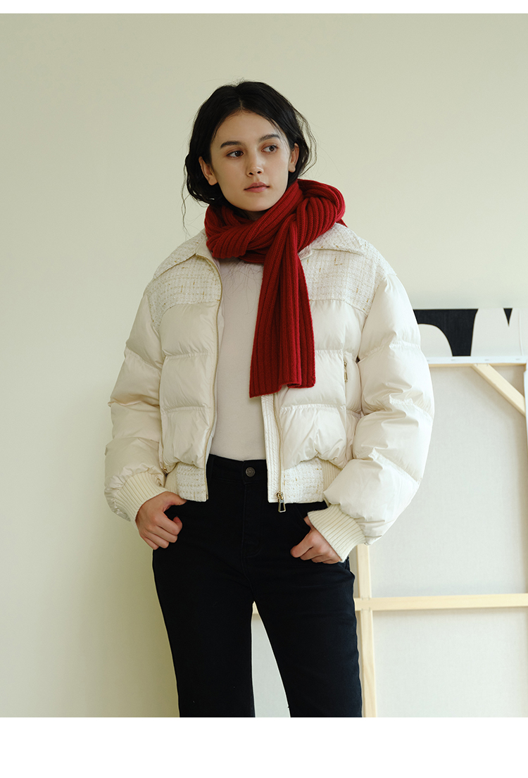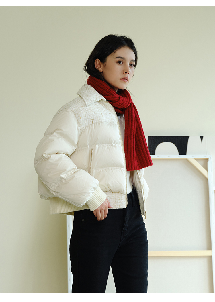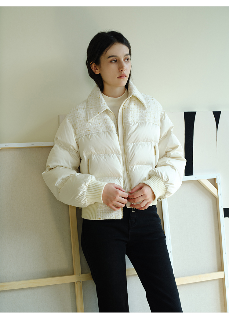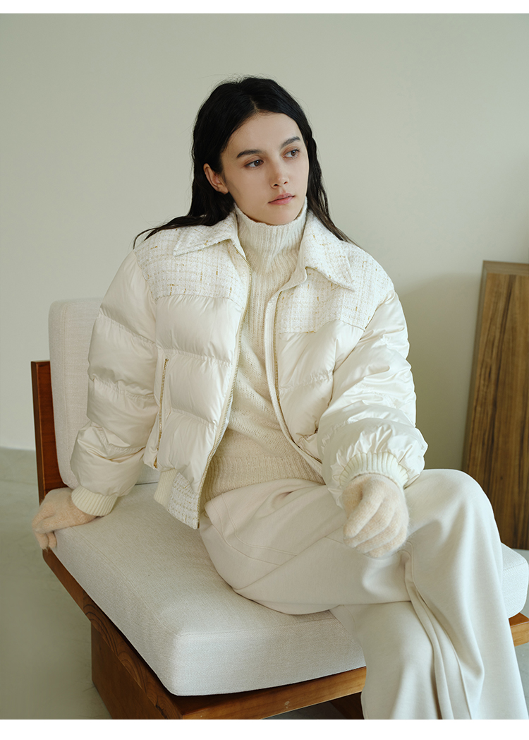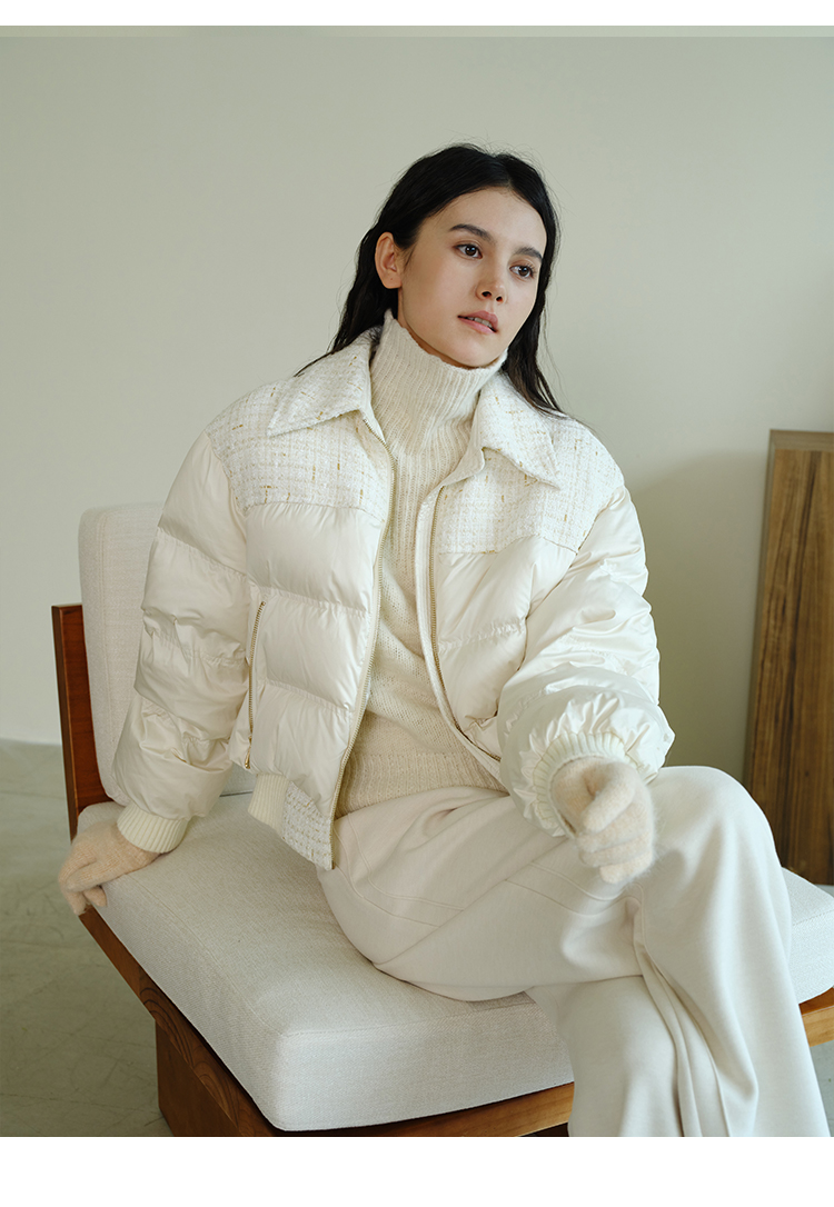 HeyDress小香风羽绒服女冬季法式复古设计感白鸭绒保暖白色外套