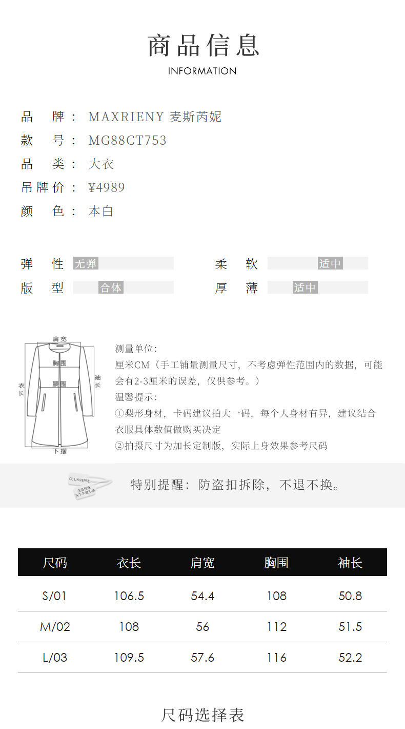 【商场同款】MAXRIENY*极简落肩复古羊毛大衣23冬款外套长款女(货号:MG88CT753)