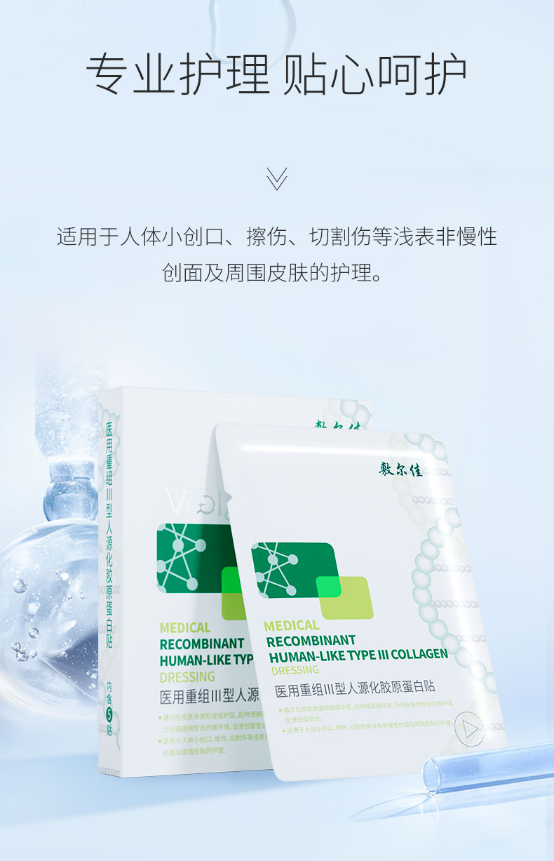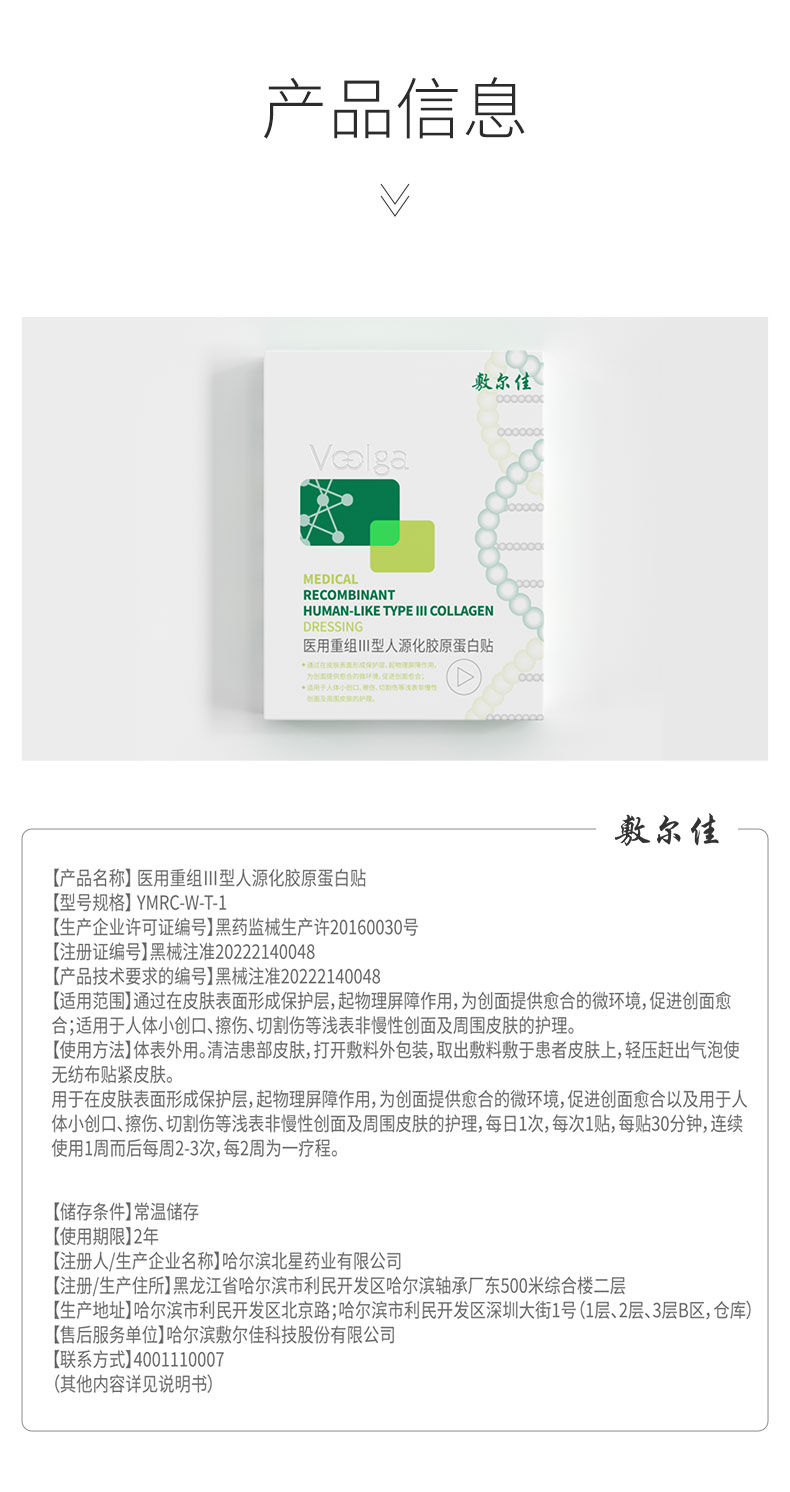 敷尔佳医用重组III型人源化胶原蛋白敷料 创面愈合皮肤护理5片/盒