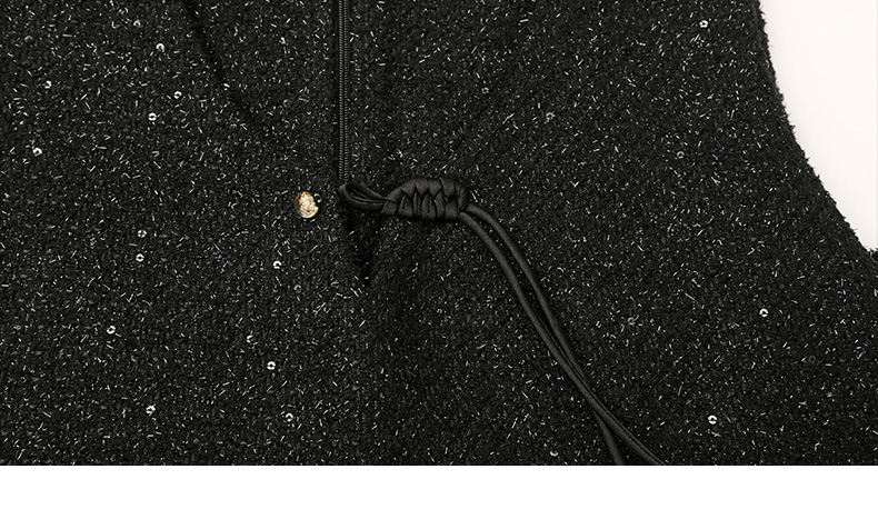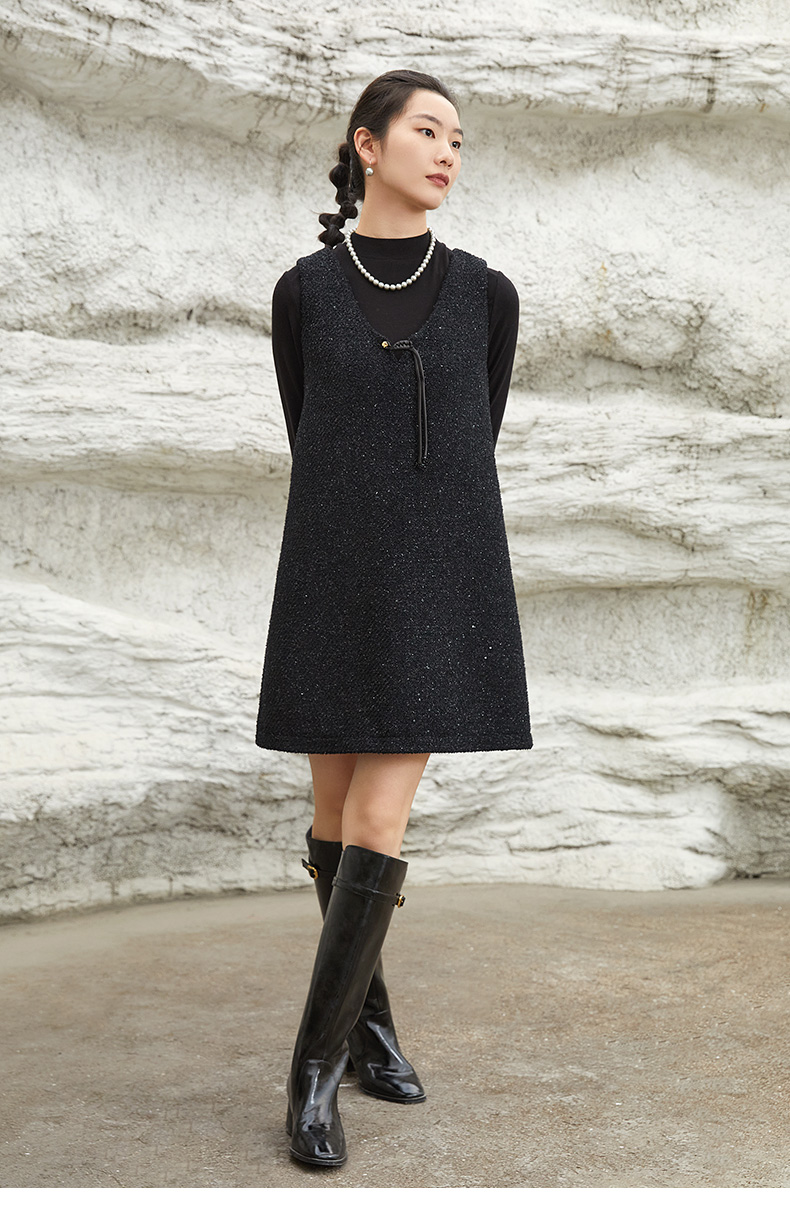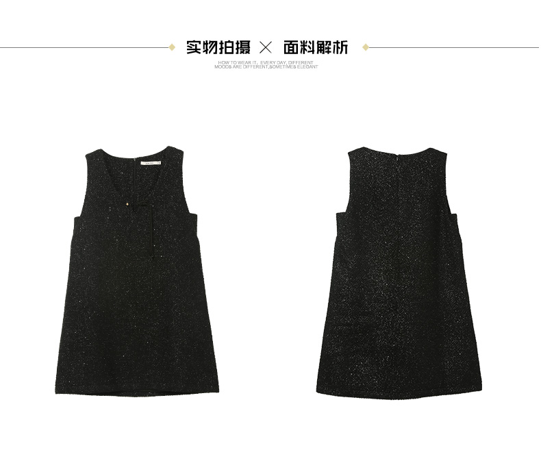 黑色亮片无袖连衣裙女 小香风 V 领系带 A 字裙 秋冬内搭外穿时尚短裙