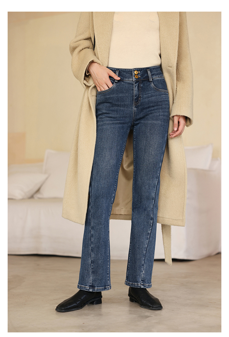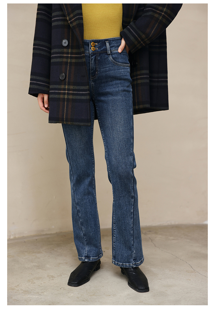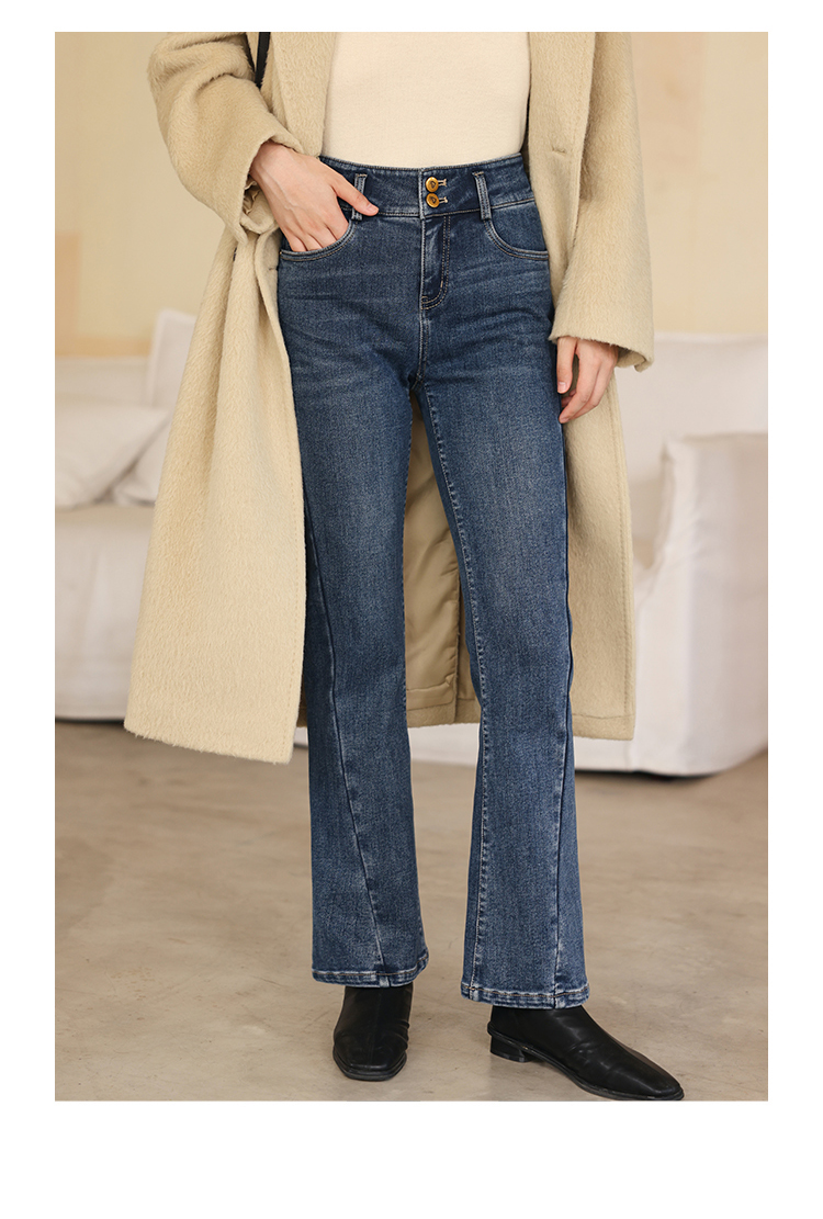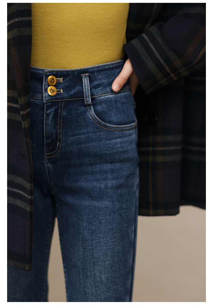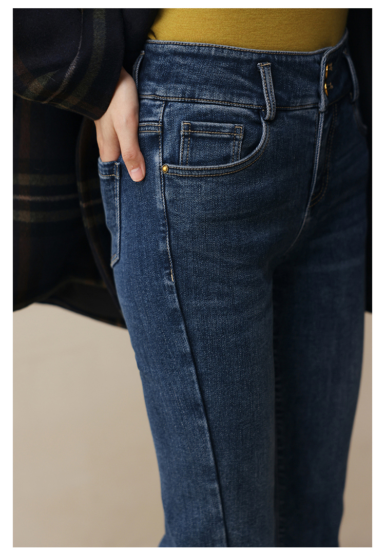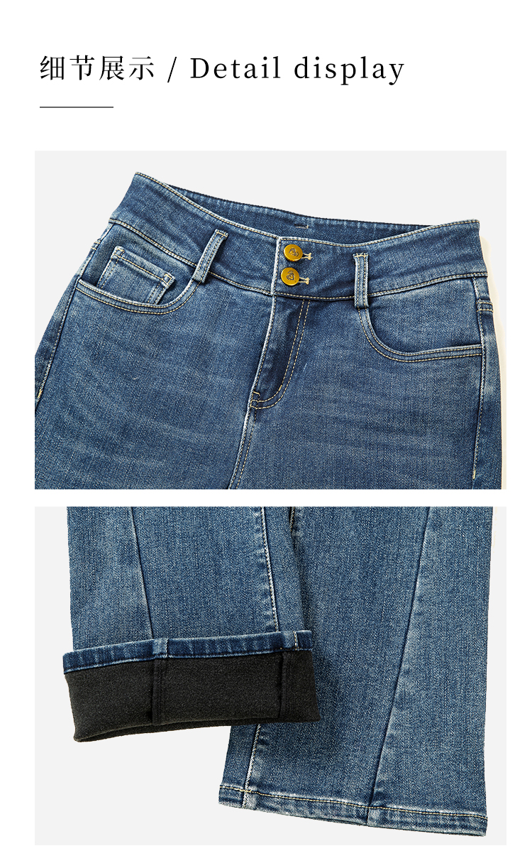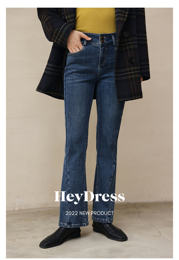 HeyDress复古加绒牛仔裤女秋冬高腰修身显瘦百搭马蹄裤微喇裤子