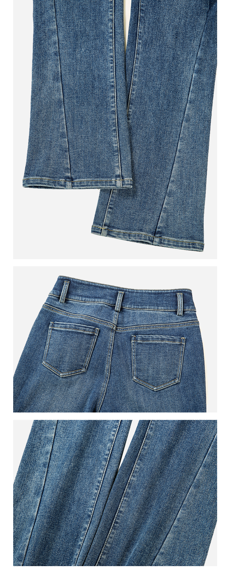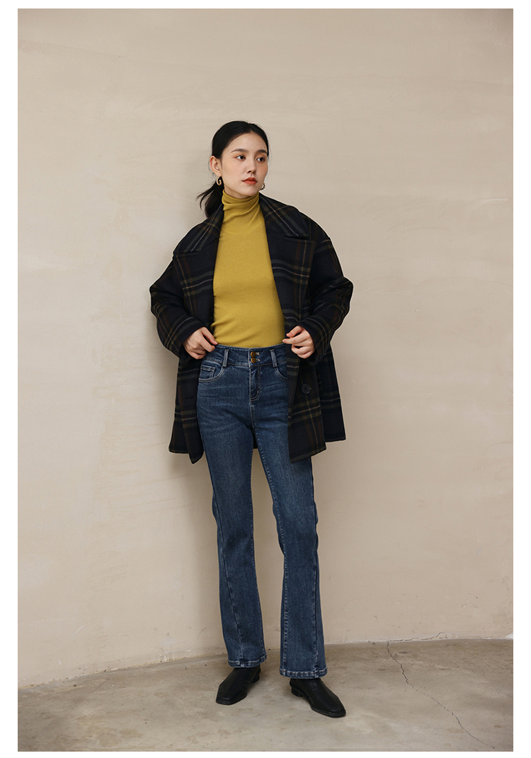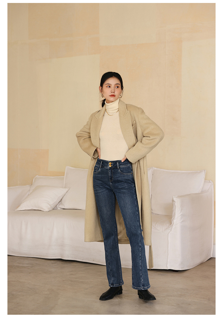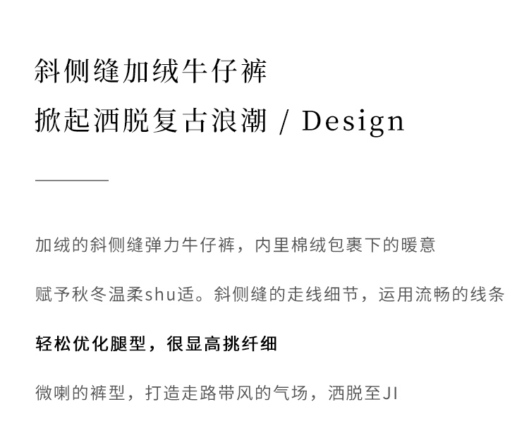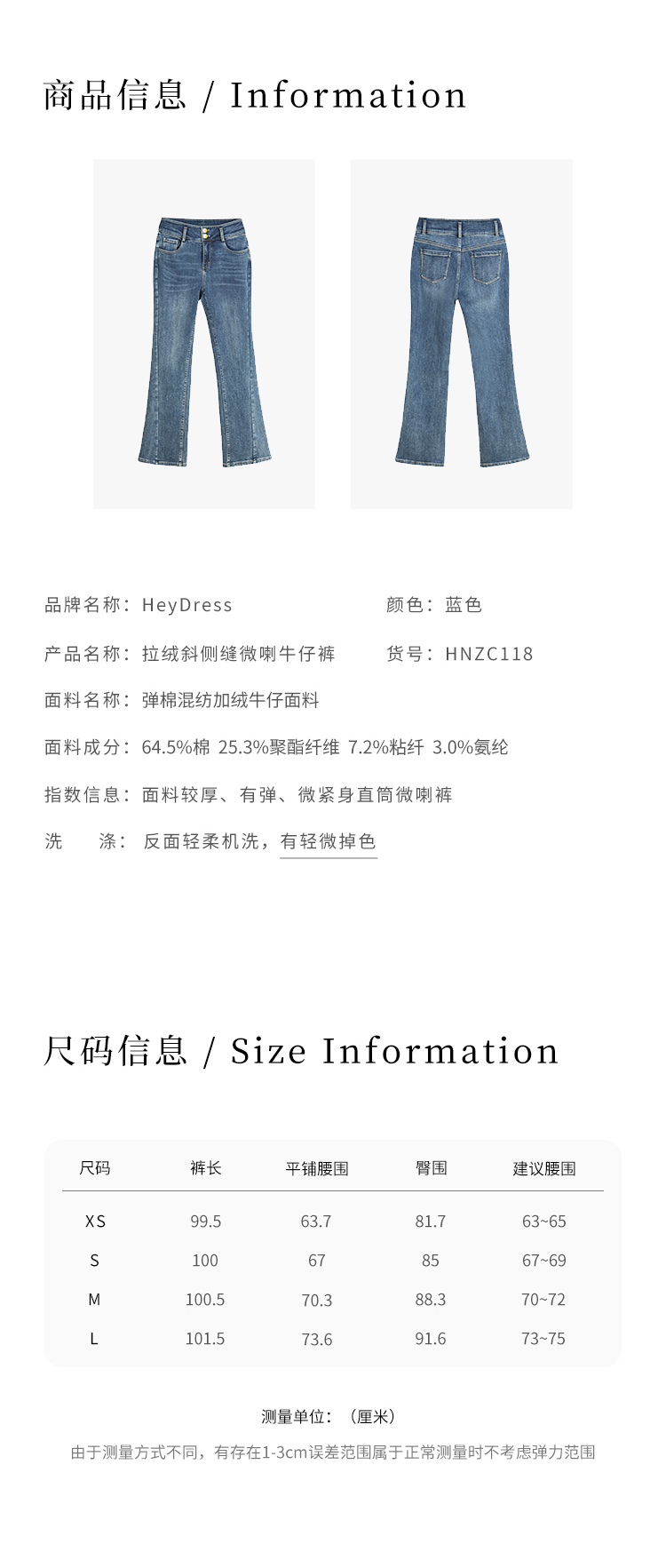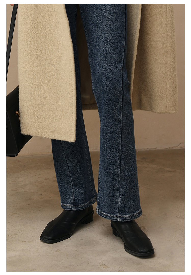 HeyDress复古加绒牛仔裤女秋冬高腰修身显瘦百搭马蹄裤微喇裤子