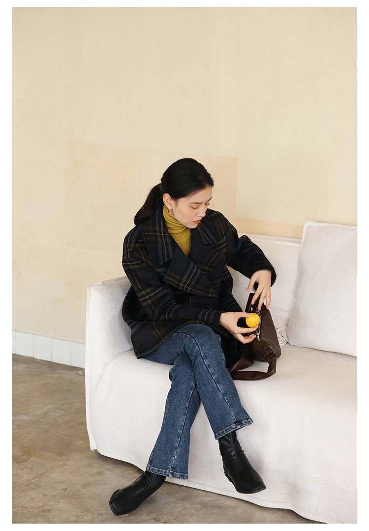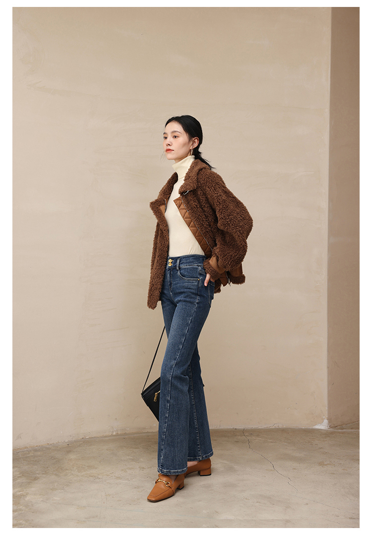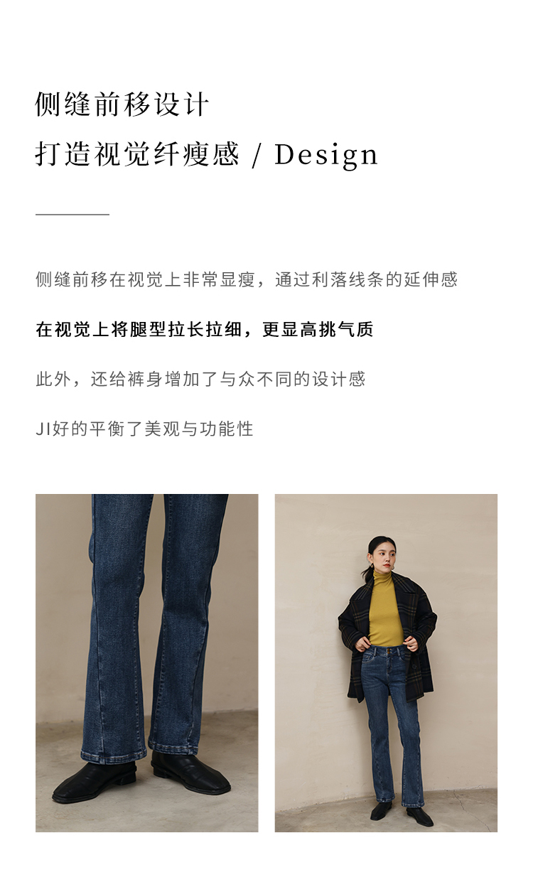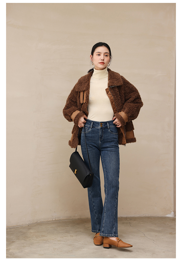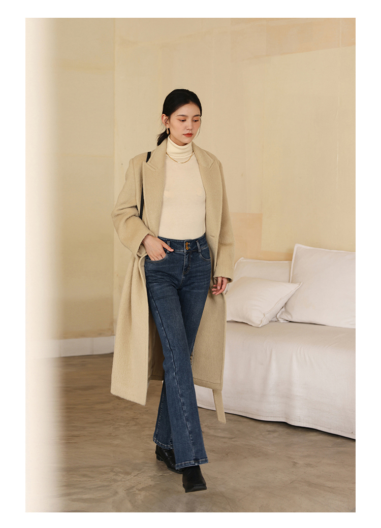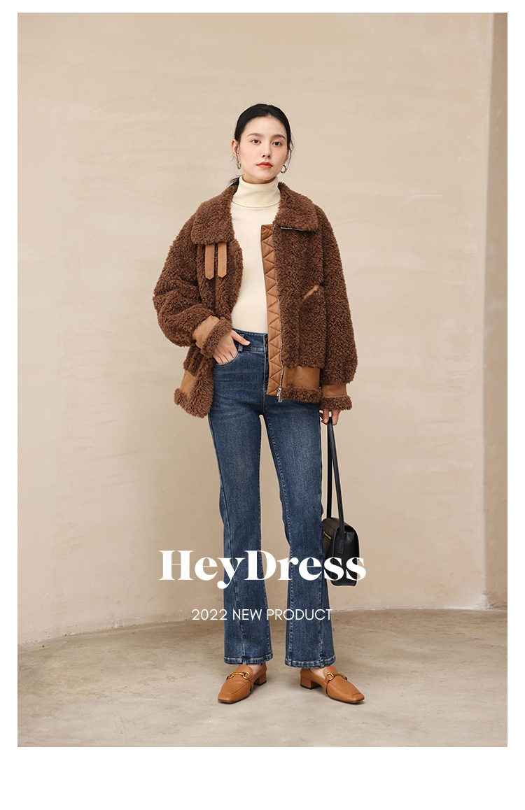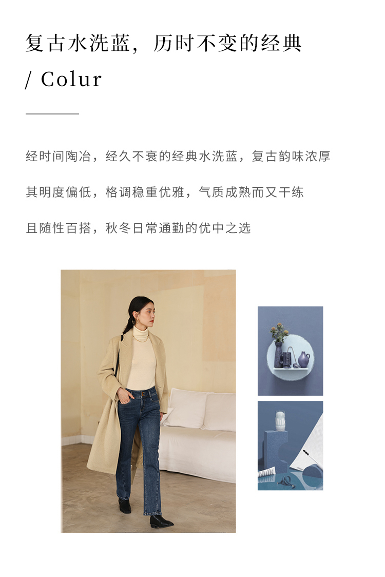 HeyDress复古加绒牛仔裤女秋冬高腰修身显瘦百搭马蹄裤微喇裤子