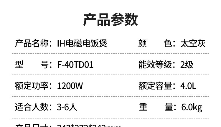 厂家直发-九阳(Joyoung)4L铁釜电饭煲F-40TD01
