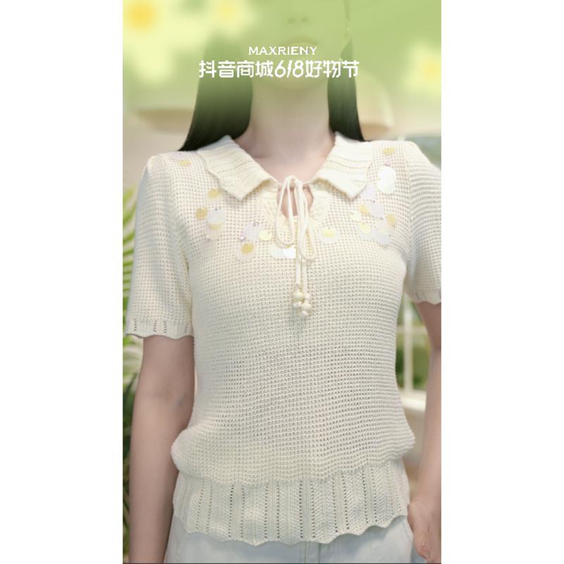 MAXRIENY设计师款精致气质优雅时尚新款针织短袖重工钉珠短袖女(货号:MF86SW259A20)