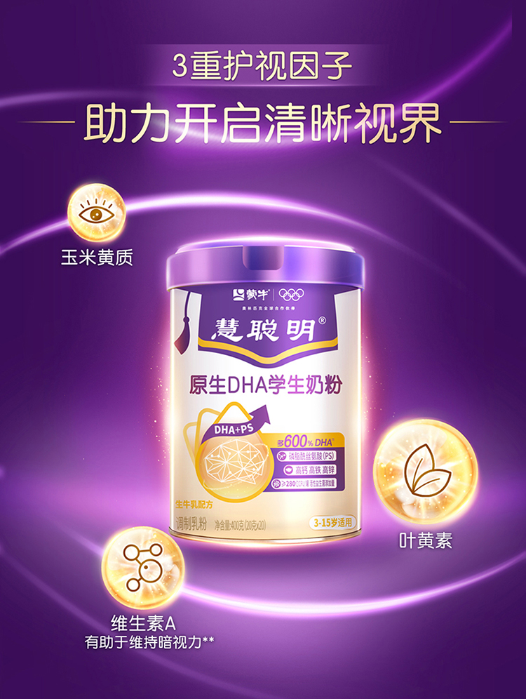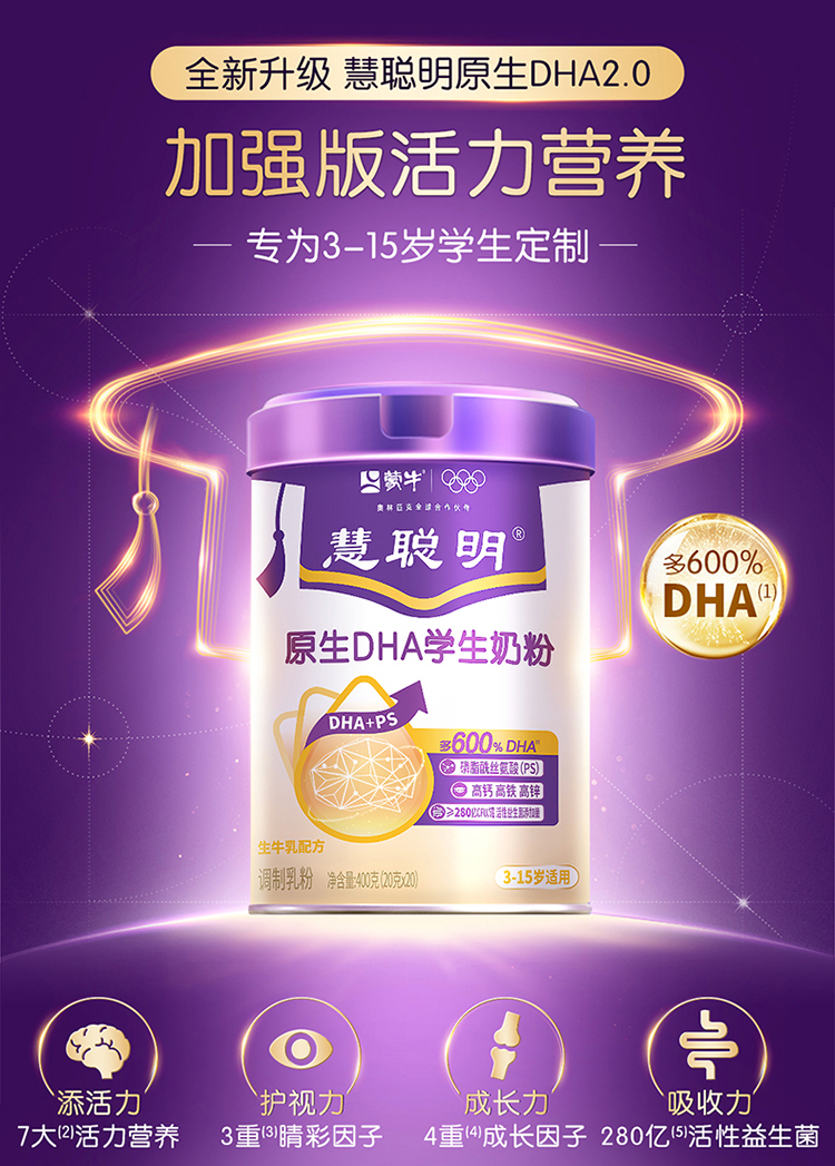 蒙牛慧聪明原生DHA学生奶粉400g(升级版)