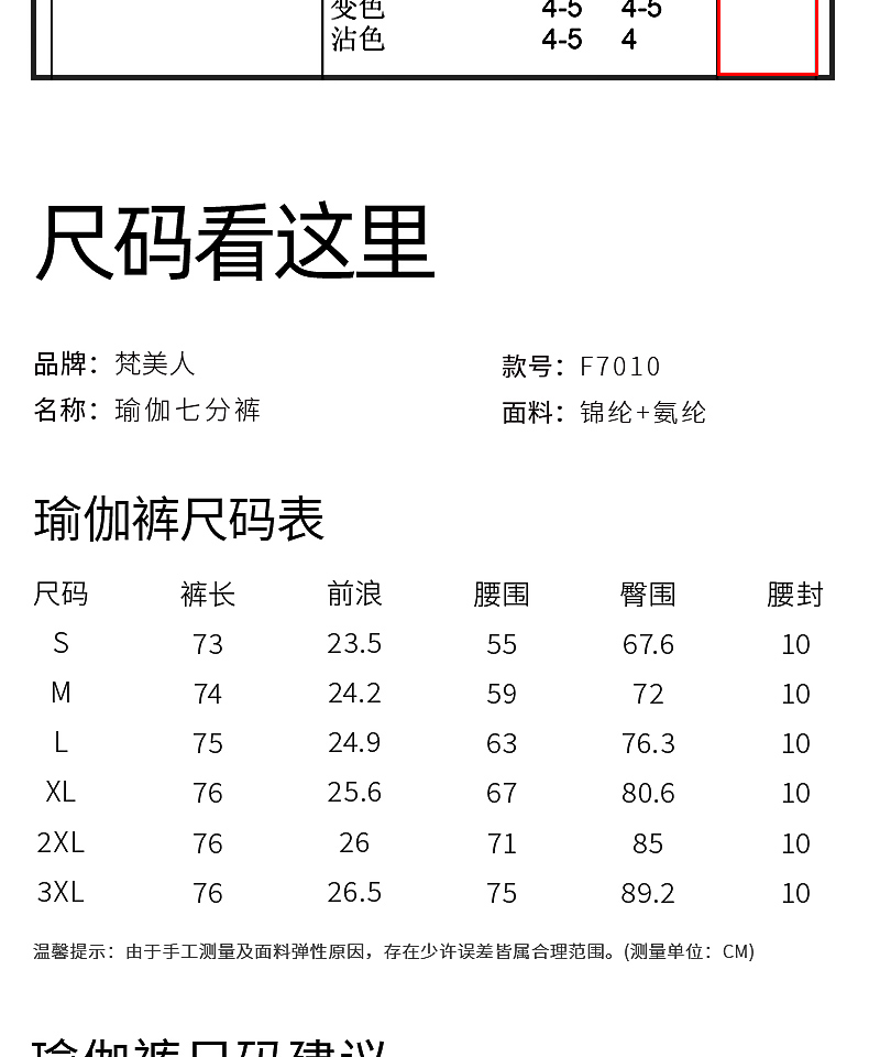梵美人F7010 瑜伽七分裤 莱卡塑型面料 金标 无尴尬线