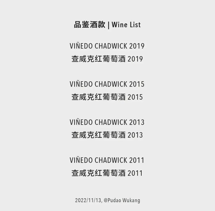 【11.13 武康门票 Wukang Ticket】智利顶级佳酿摇篮-查威克垂直品鉴会 Viñedo Chadwick Vertical Tasting